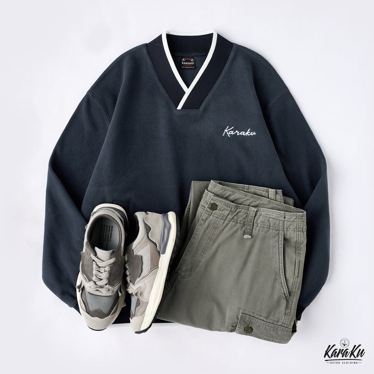 It is treated with a brushed finish, so it feels soft and warm, just like the lining. It has high heat retention, making it the best inner item from fall to winter. It goes well with denim, chino pants, cargo pants, and wide pants.