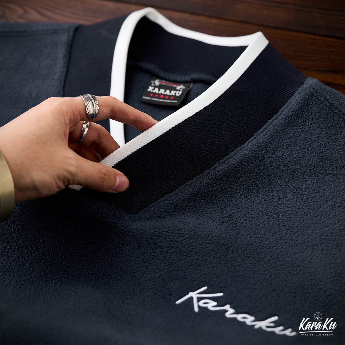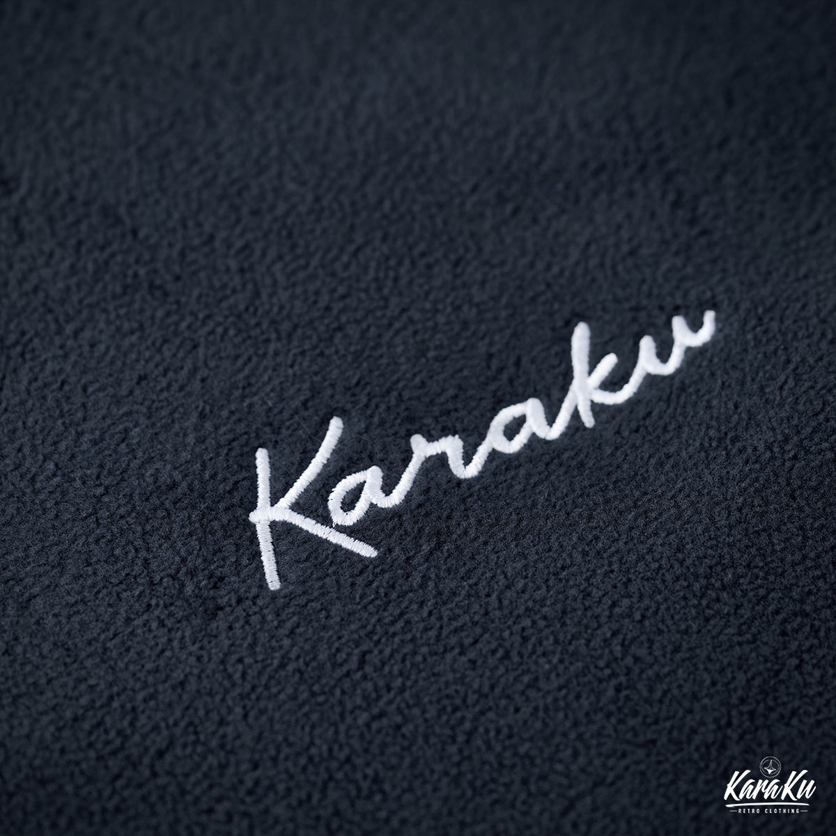 The "Karaku" brand name is embroidered small on the chest, giving it a sophisticated feel that is more luxurious and durable than prints.