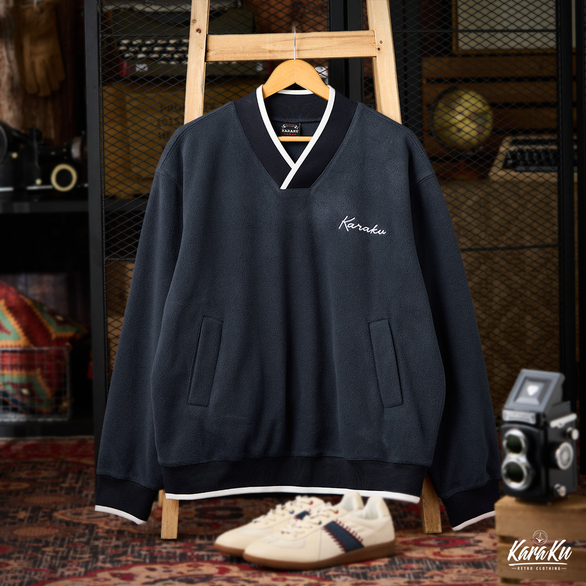 「Karaku」Embroidered double-sided fleece sweatshirt