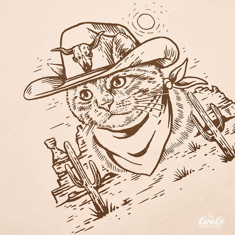 「COWBOY・Western cat」American casual print cotton t-shirt