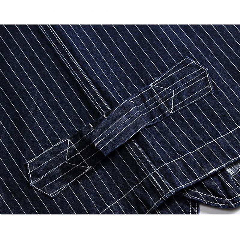 전통 와바시 스트라이프 원단 사용하여 인디고 도트 발염으로 스트라이프 패턴 구현하며 워크웨어 감성 살린 클래식 아이템입니다.