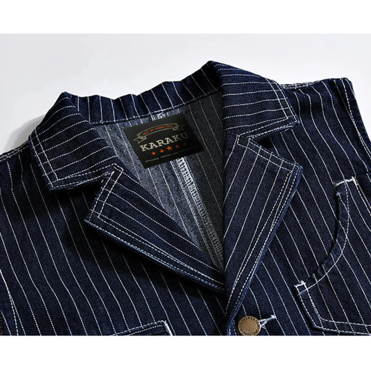 인디고 염색 원단에 도트 형태의 발염 기법으로 연속적인 스트라이프 패턴을 만들어낸 전통적인 워크웨어 원단입니다. 자연스러운 패턴 덕분에 실사용 시에도 변형이나 흔적이 눈에 띄지 않으며, 1900년대 초 미국 철도 노동자들이 즐겨 착용했습니다.