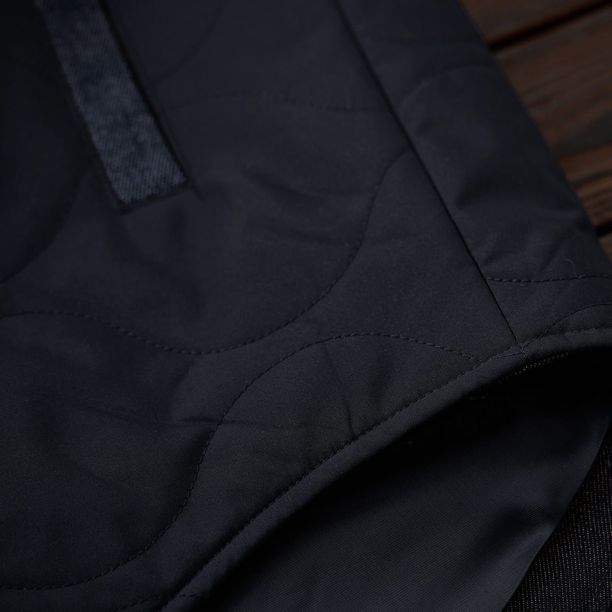 앤티크 훅 버튼 안감 표주박 퀼팅 하이넥 데님 자켓