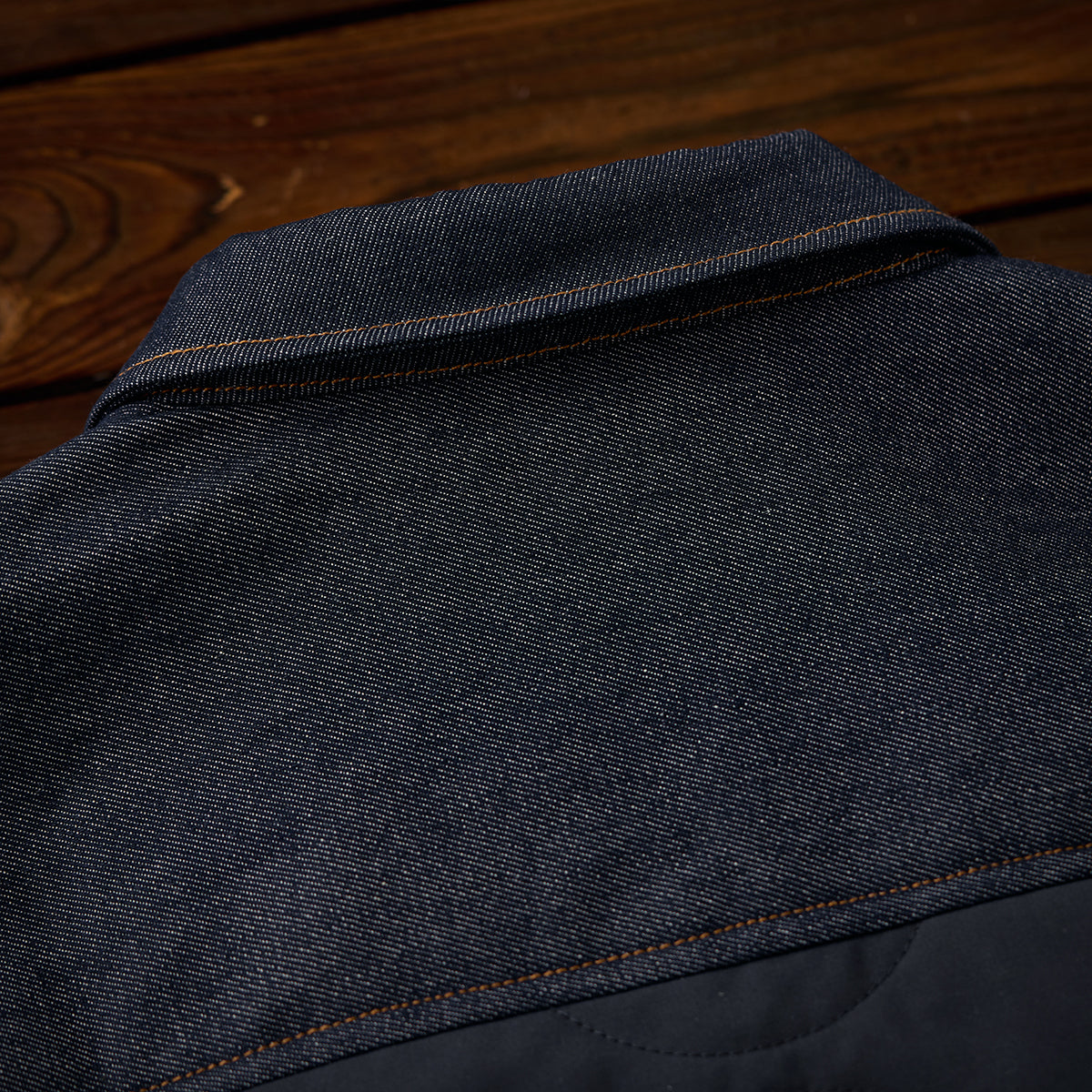 재구성 소재 콤비 워싱 데님 자켓