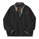 【사전예약】페이크 레이어드 스타일 멀티 스트라이프 셔츠 & V넥 풀오버 스웨트