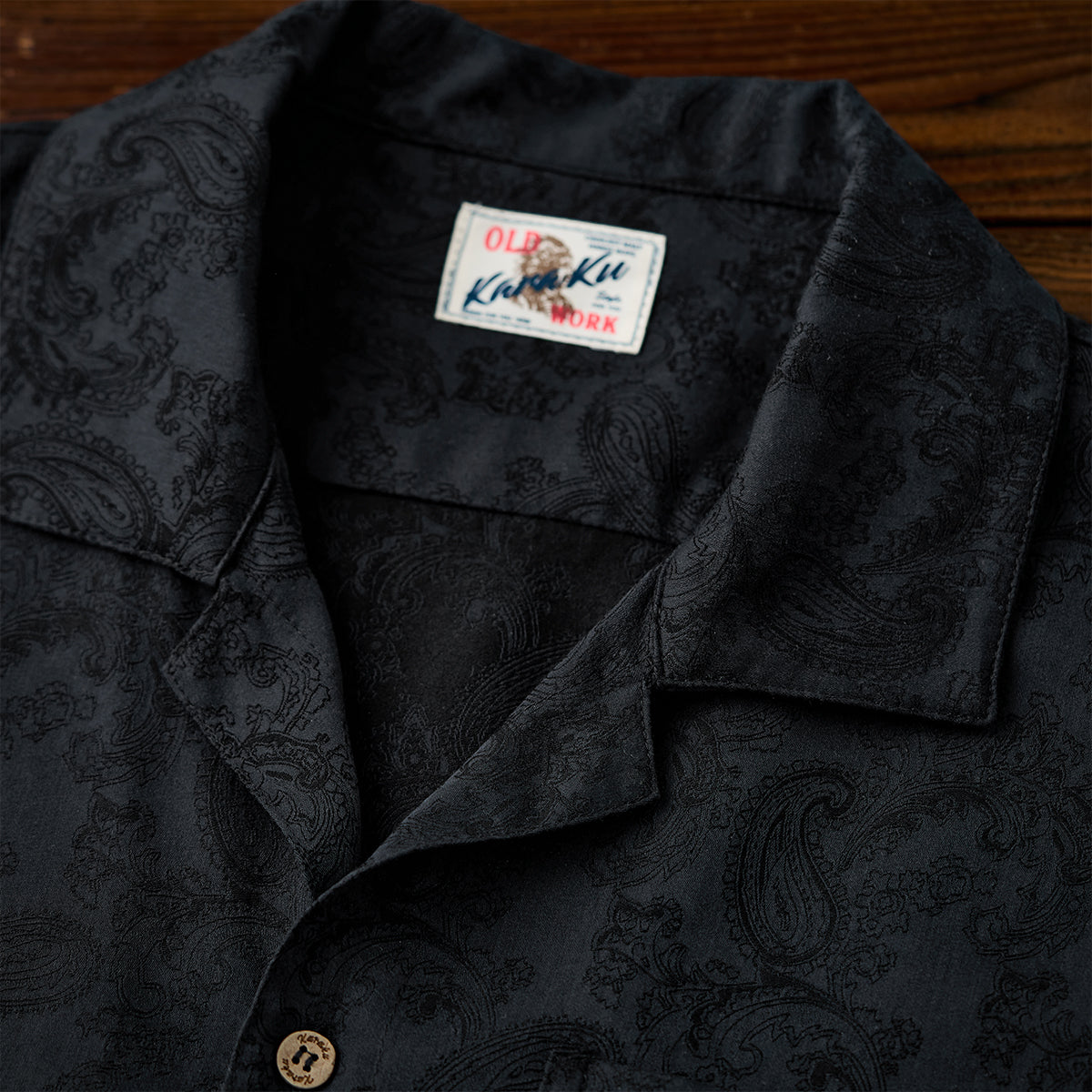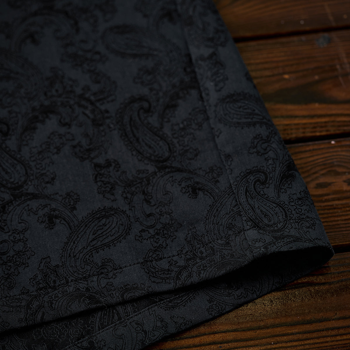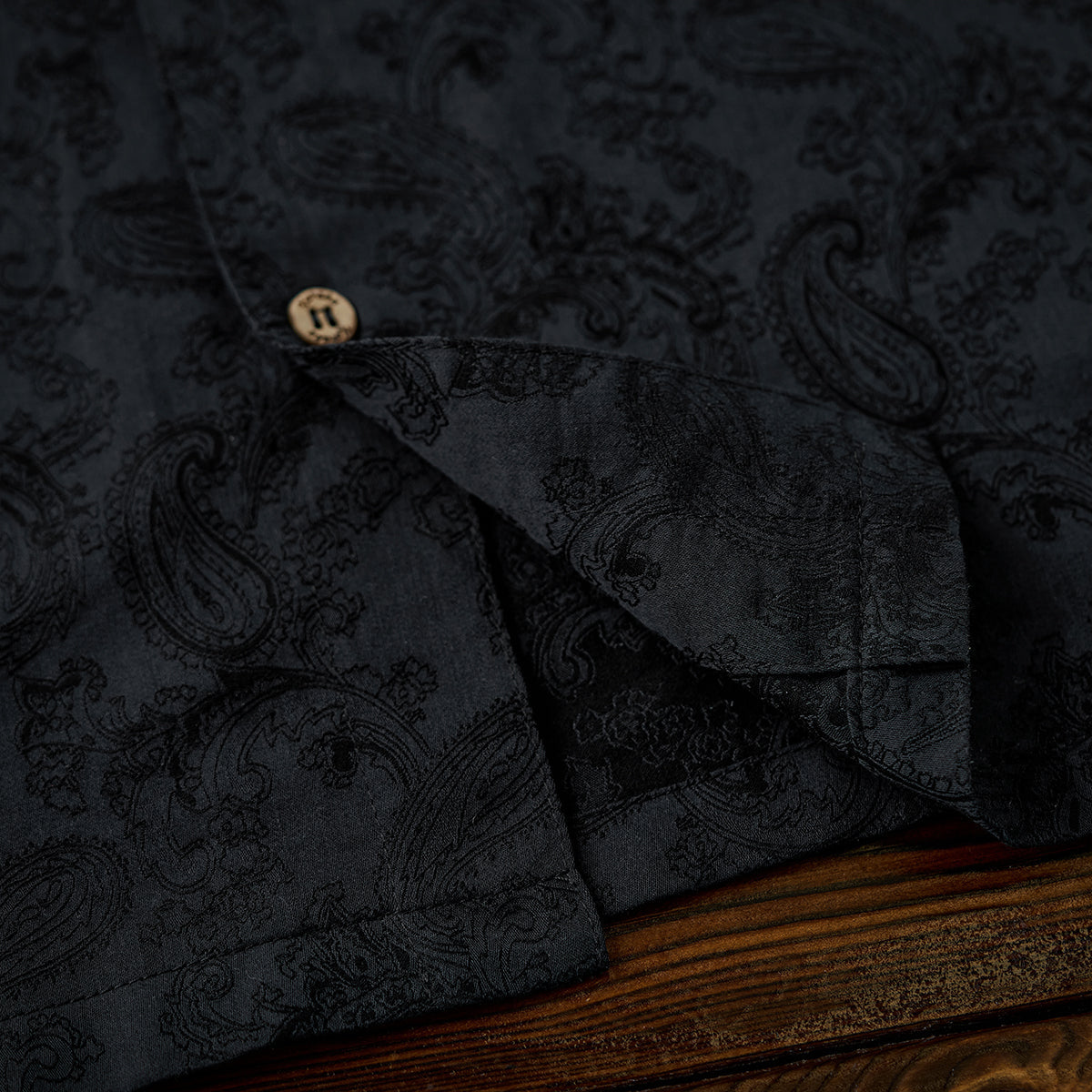 코튼 혼방 페이즐리 패턴 자카드 오픈 카라 셔츠