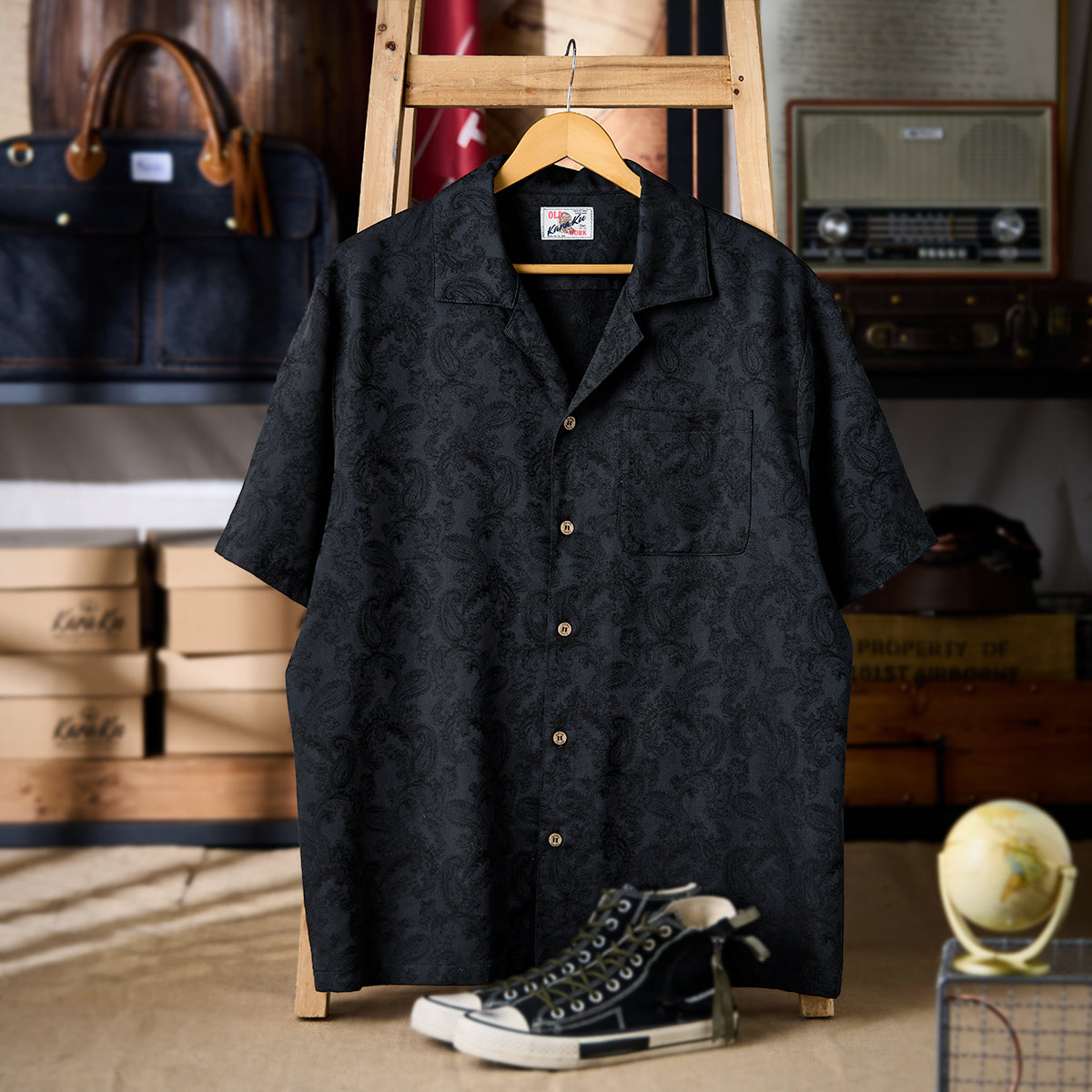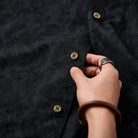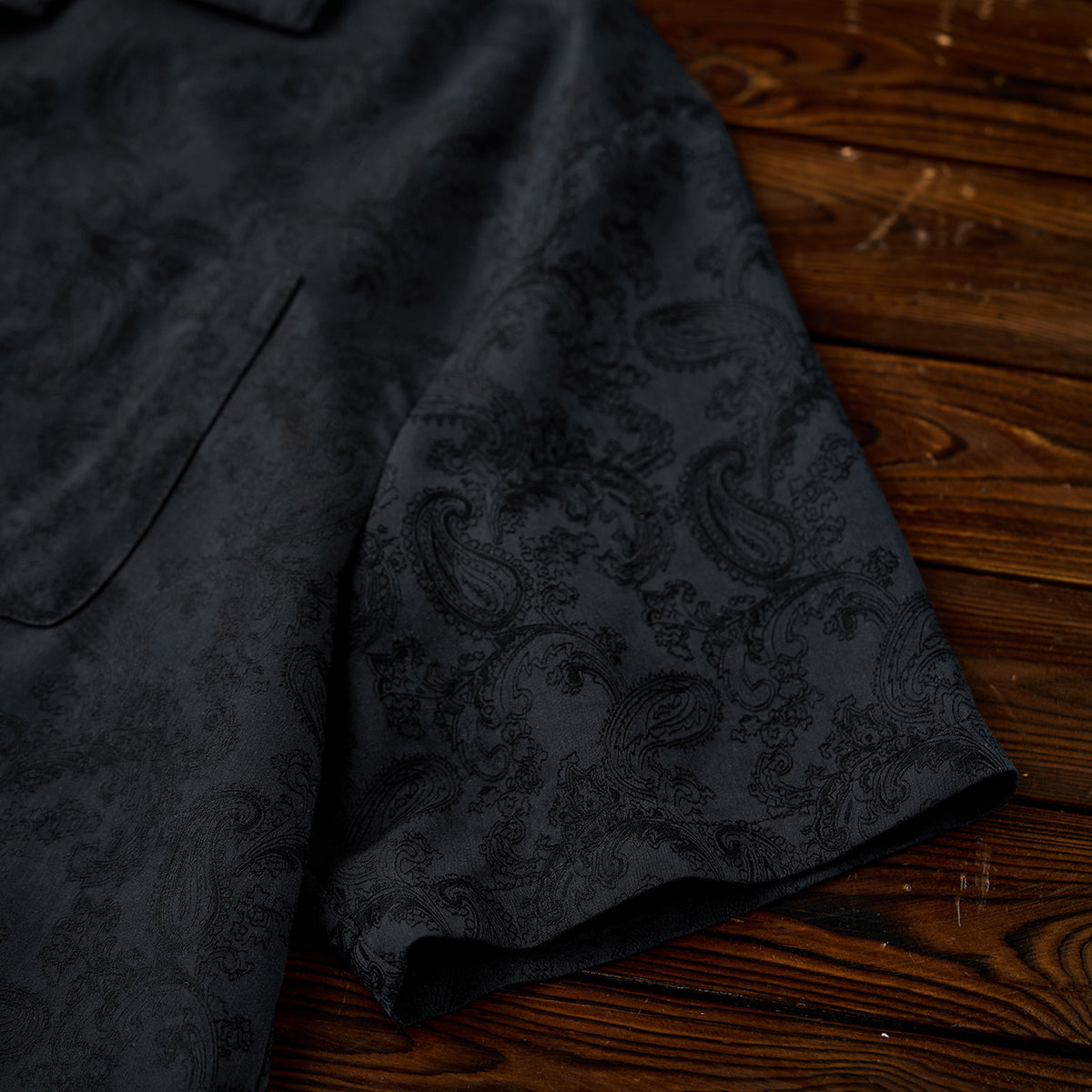 페이즐리 자카드 올오버 프린트로 고급스러운 빈티지 무드를 살린 오픈 카라 셔츠로, 빛에 따라 패턴이 은은하게 드러나며 캐주얼부터 리조트까지 활용도 높은 아이템입니다.