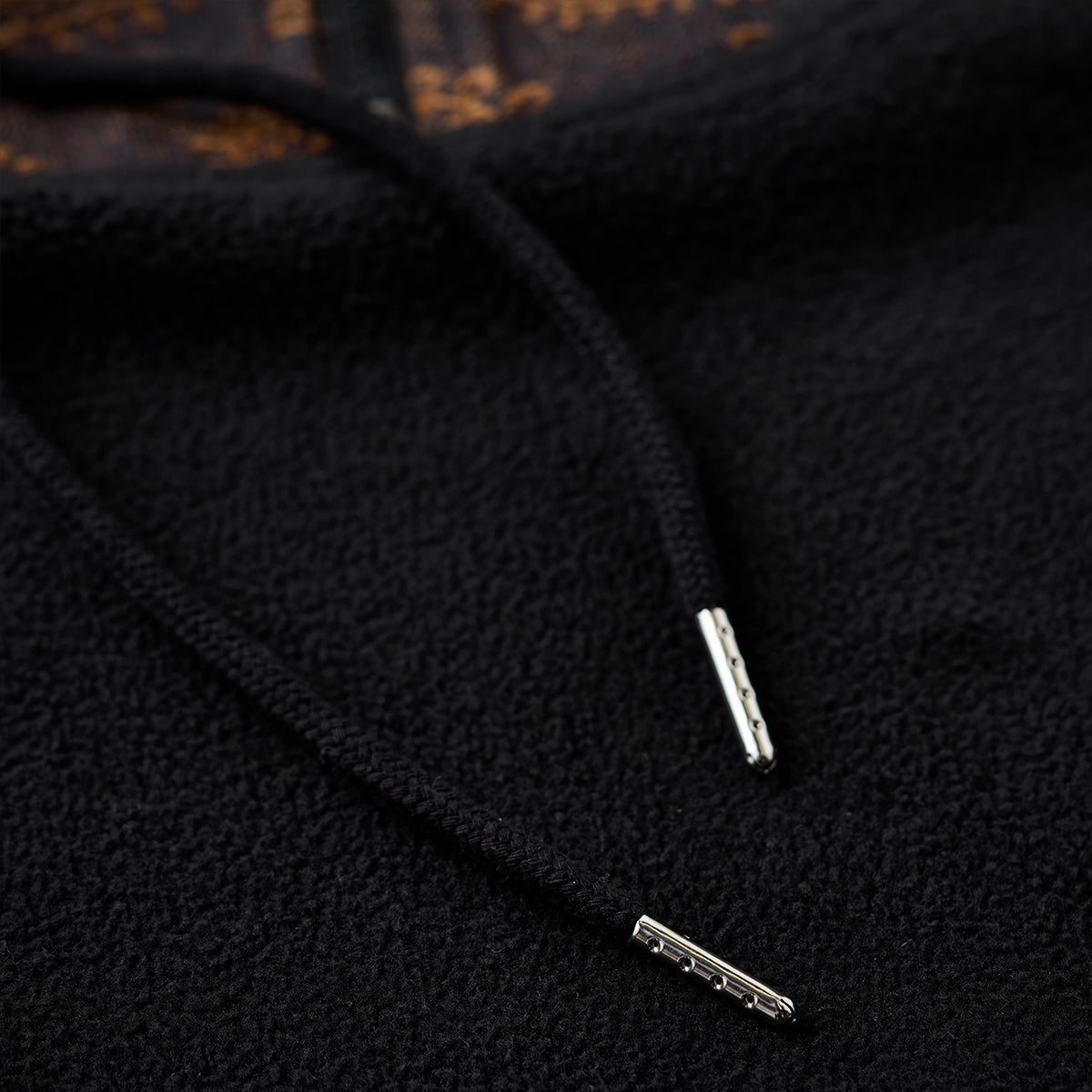 모자와 집업 부분은 페이즐리 패턴으로 제작해 나머지 블랙 컬러와 대비를 이룹니다.