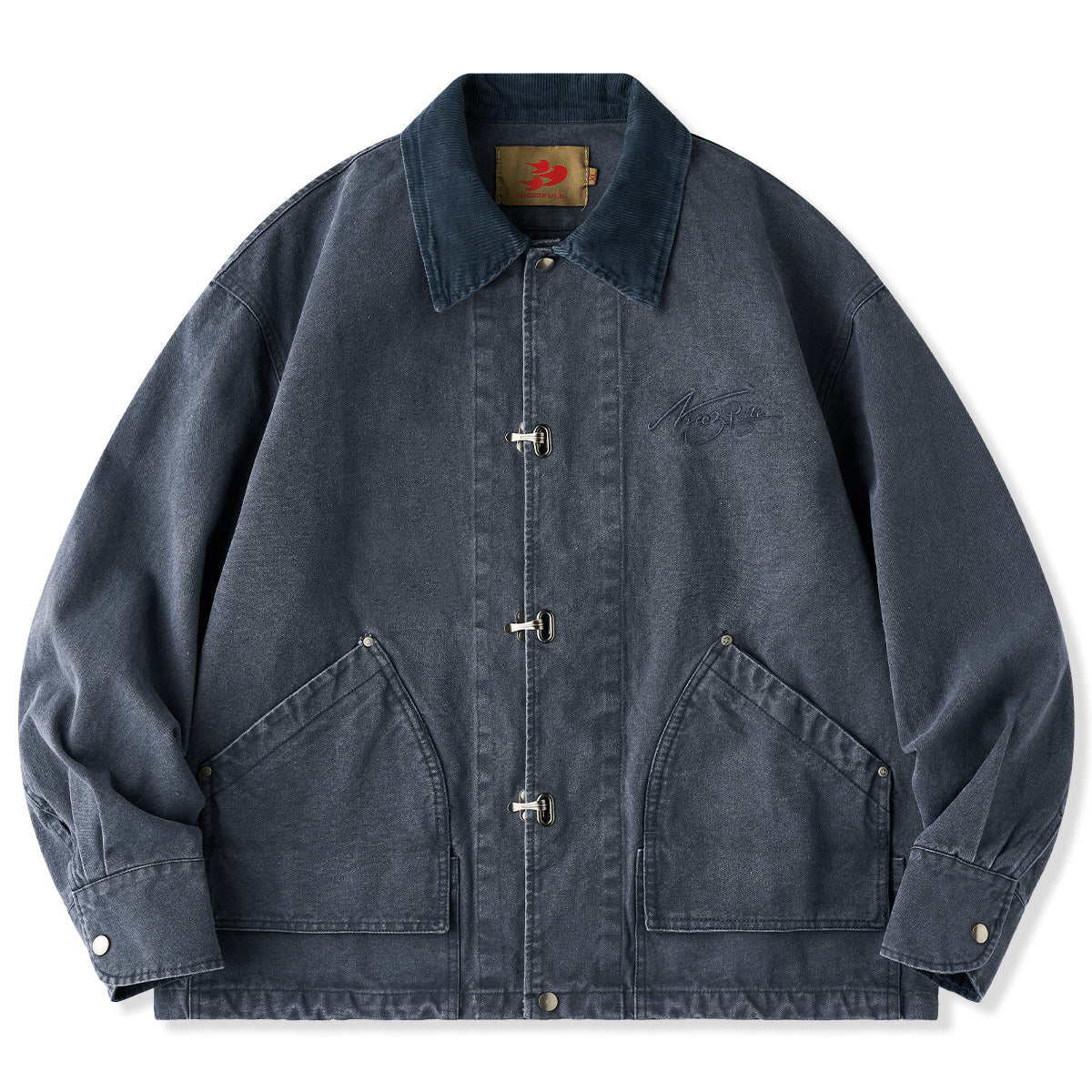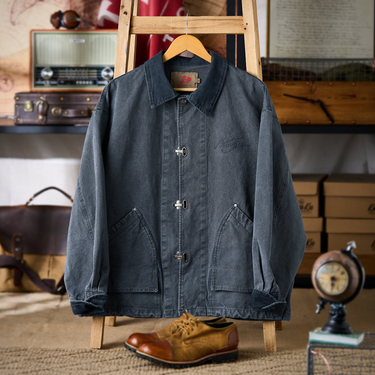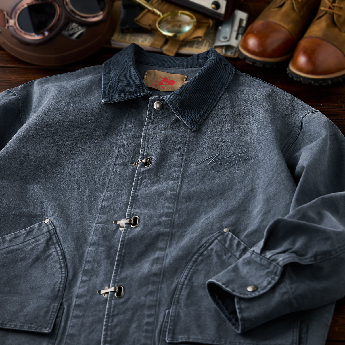 후크 버튼 디테일 코튼 캔버스 해링턴 자켓