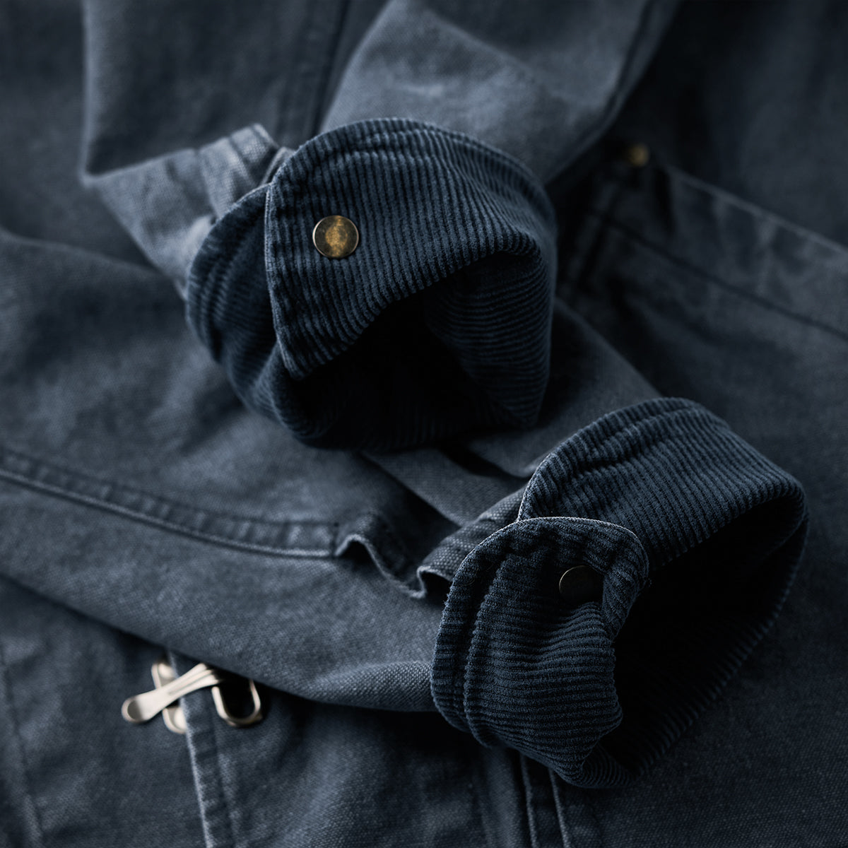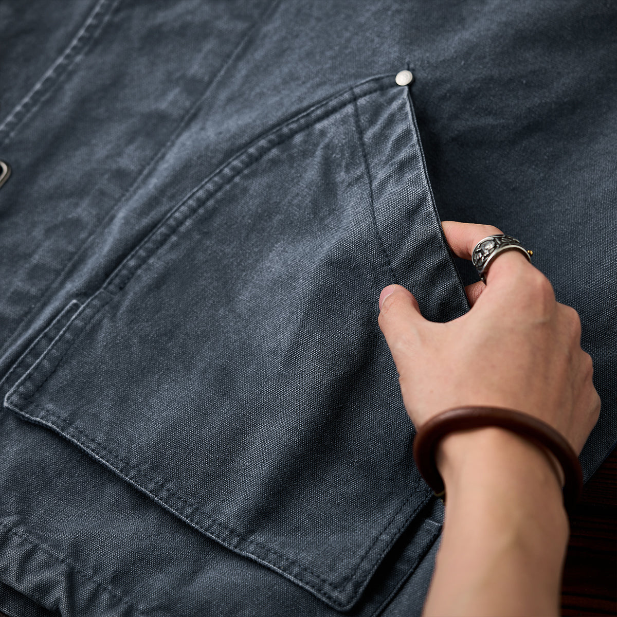 겉감은 코튼 캔버스로 매트한 질감을 지니고 내구성과 편안함을 동시에 갖췄으며, 워시드 가공으로 자연스러운 페이드감과 부드러운 착용감을 더했습니다.