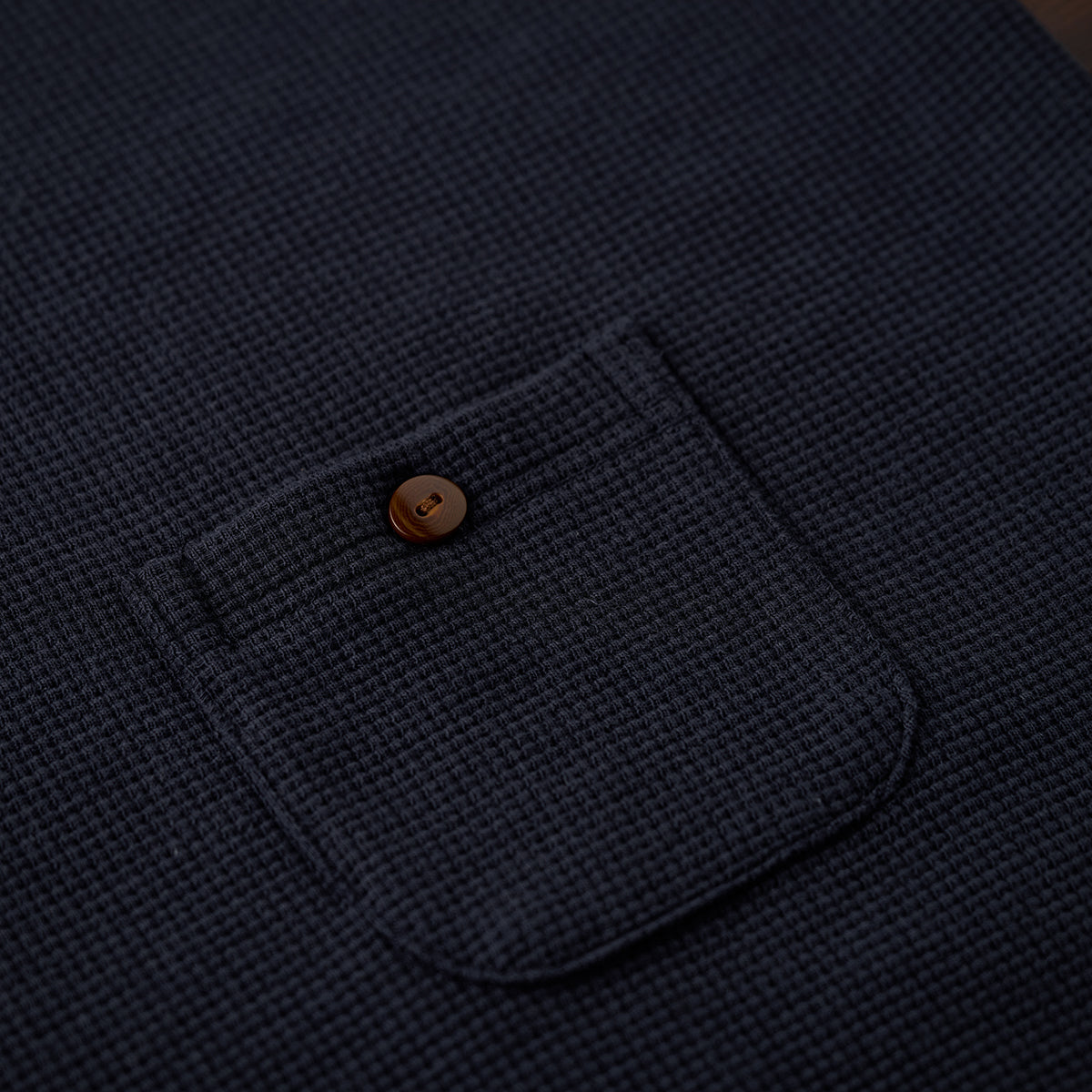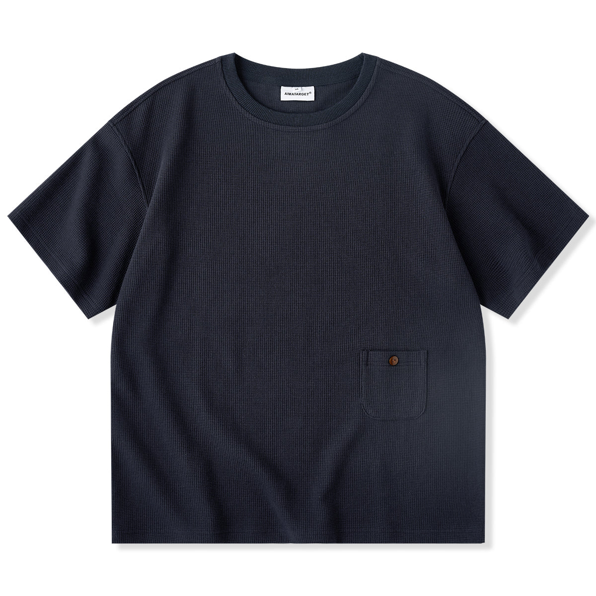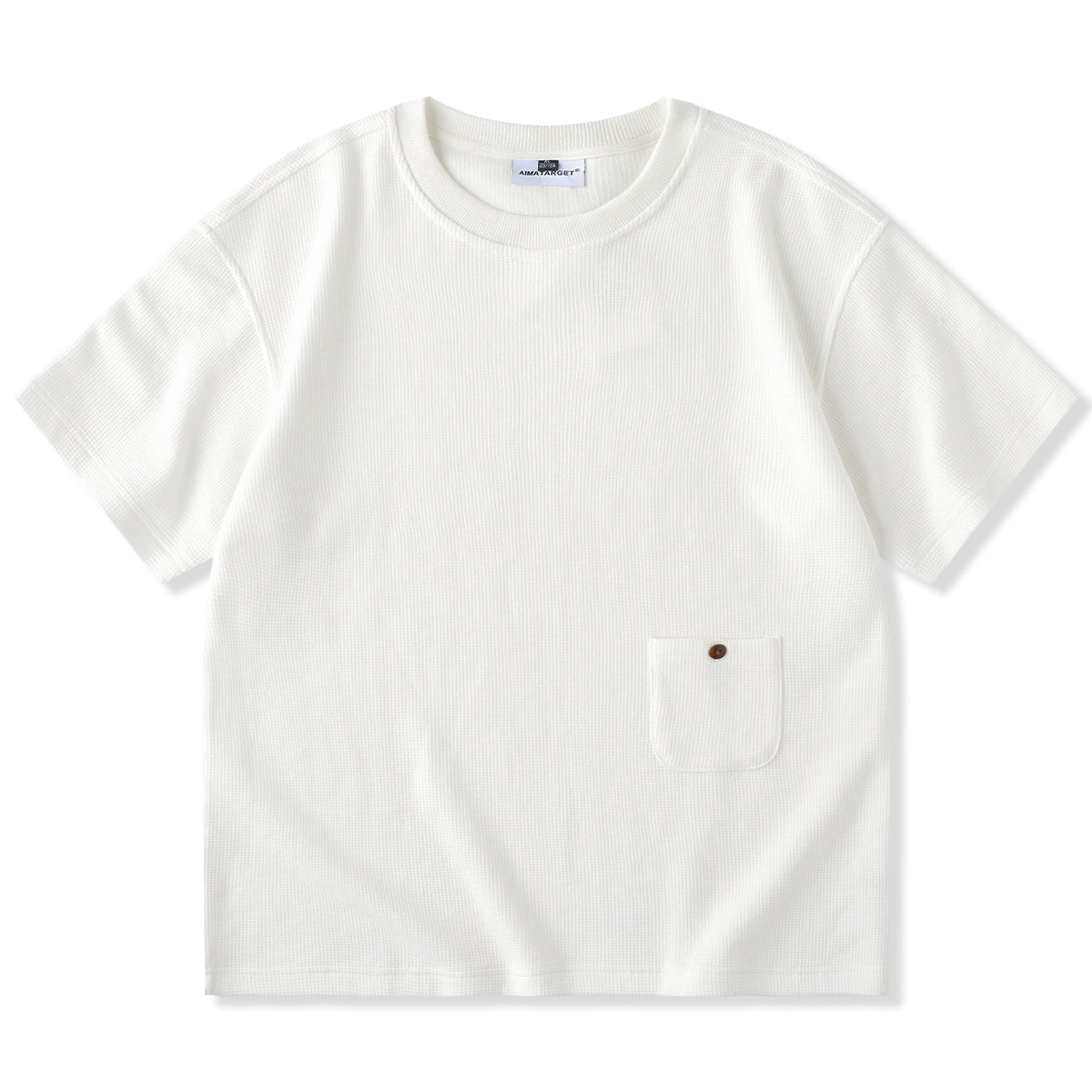 버튼 포켓 와플 헤비웨이트 코튼 혼방 티