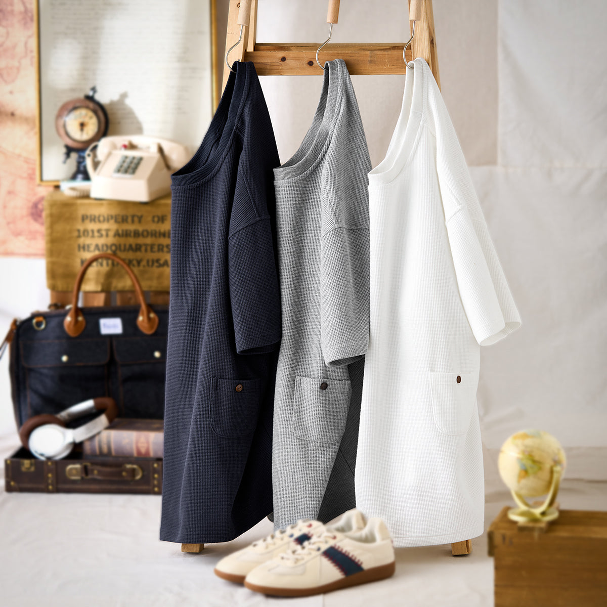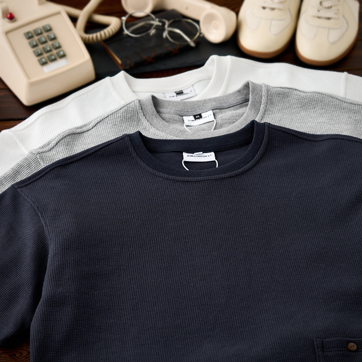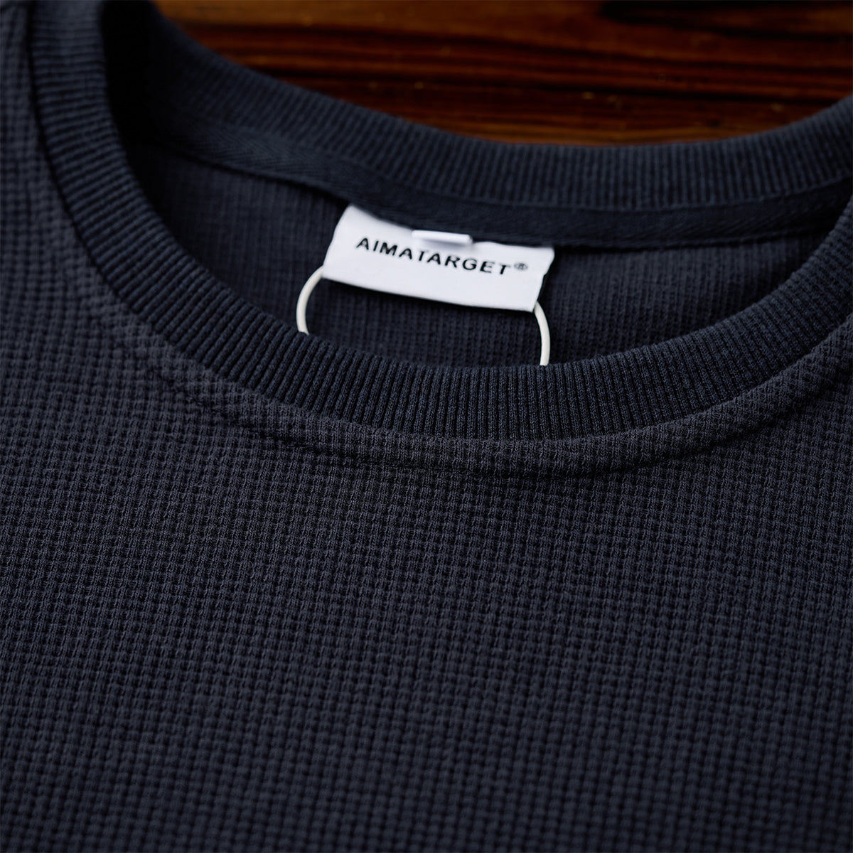 버튼 포켓 와플 헤비웨이트 코튼 혼방 티