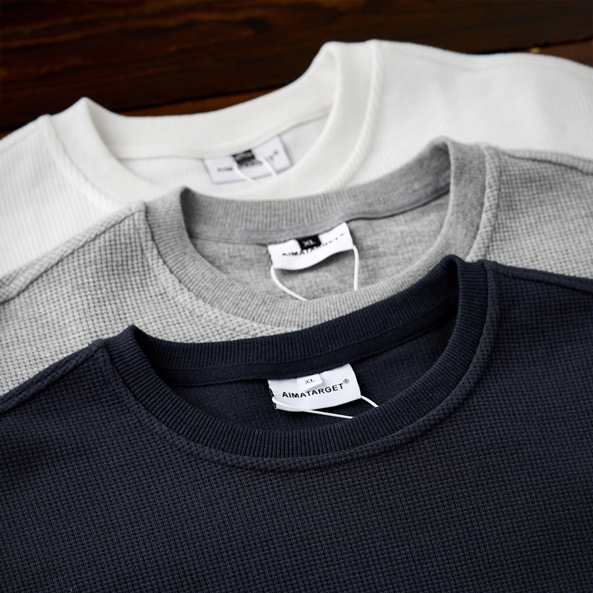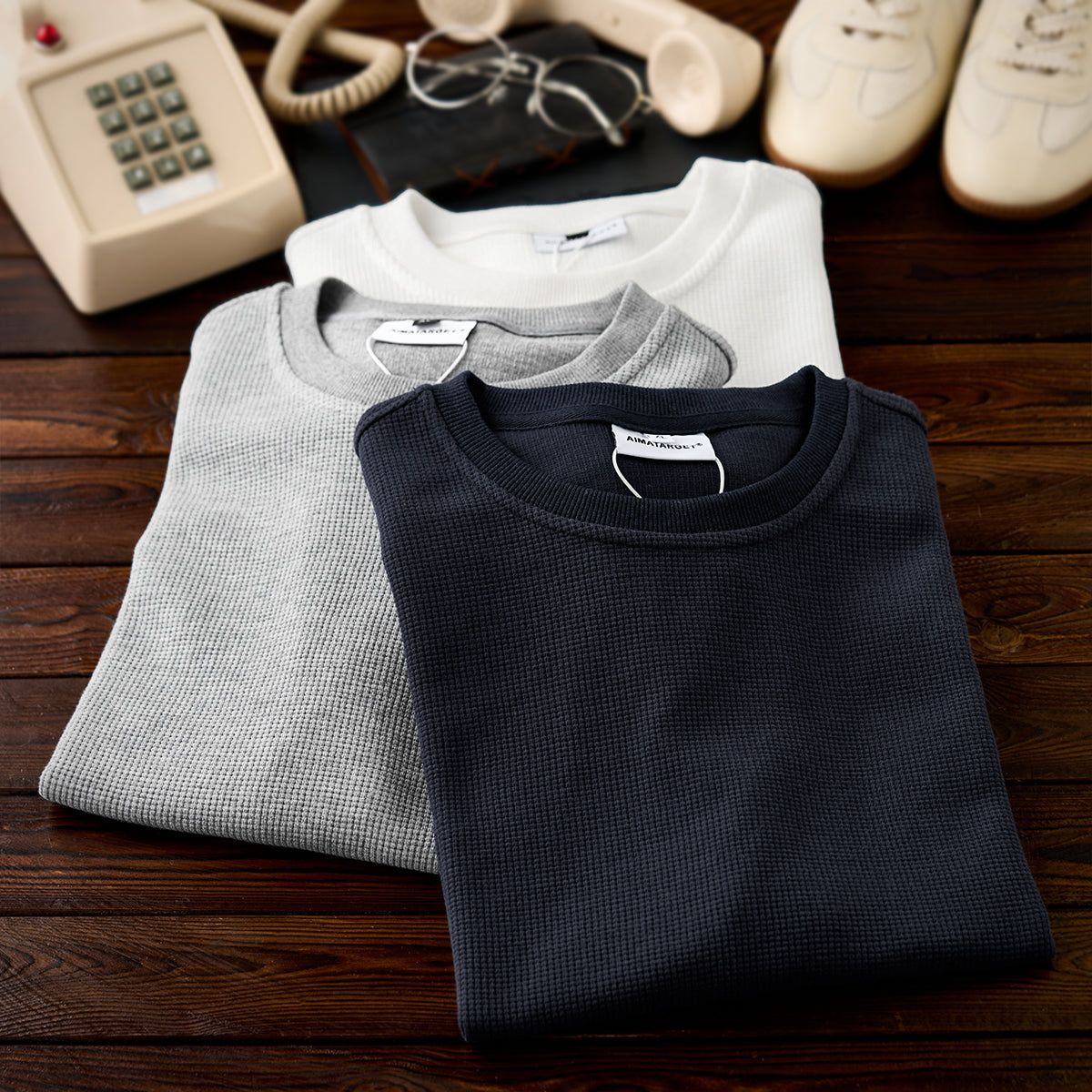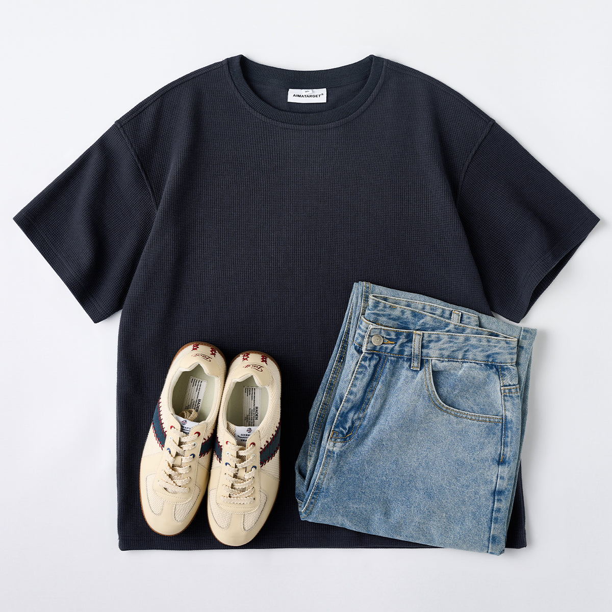 두툼한 헤비웨이트 와플 코튼 혼방 소재로 통기성이 좋고 탄탄한 착용감이 돋보이는 티셔츠입니다.