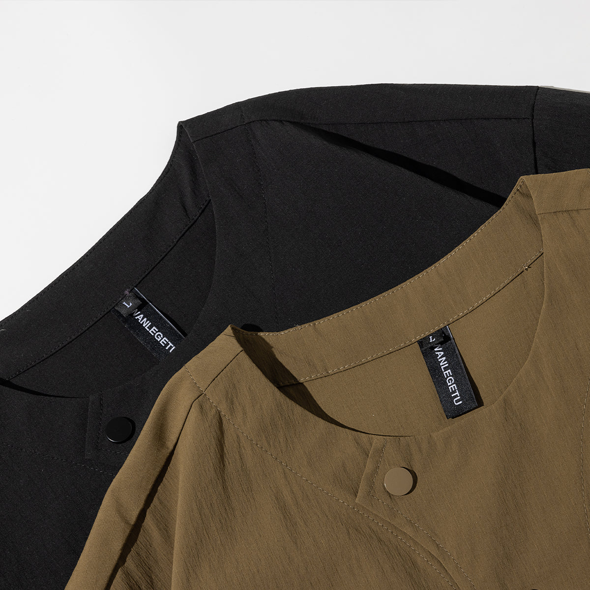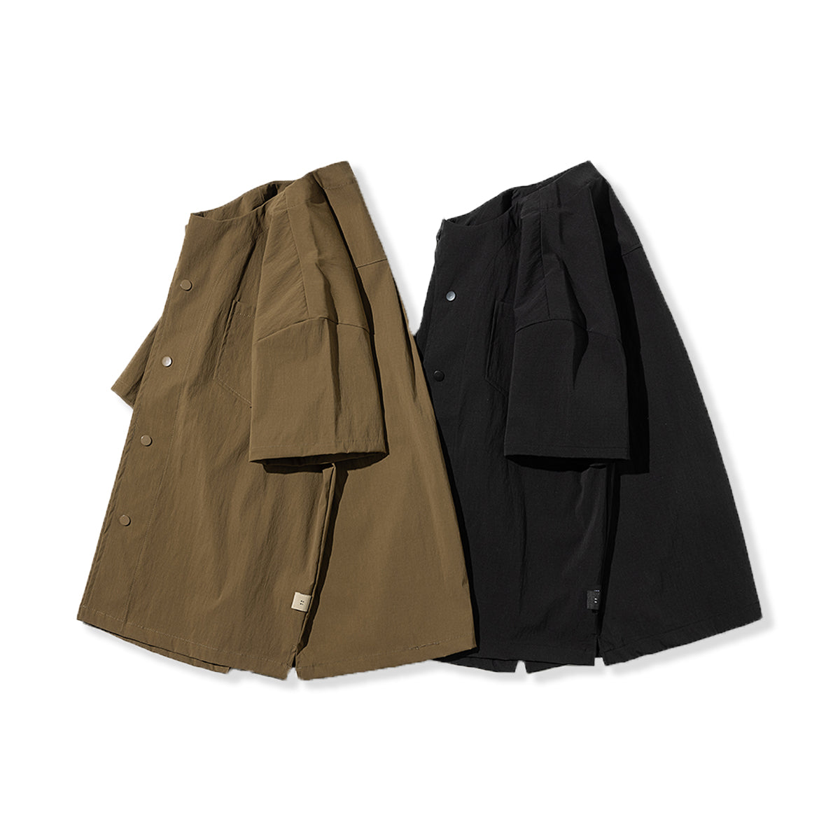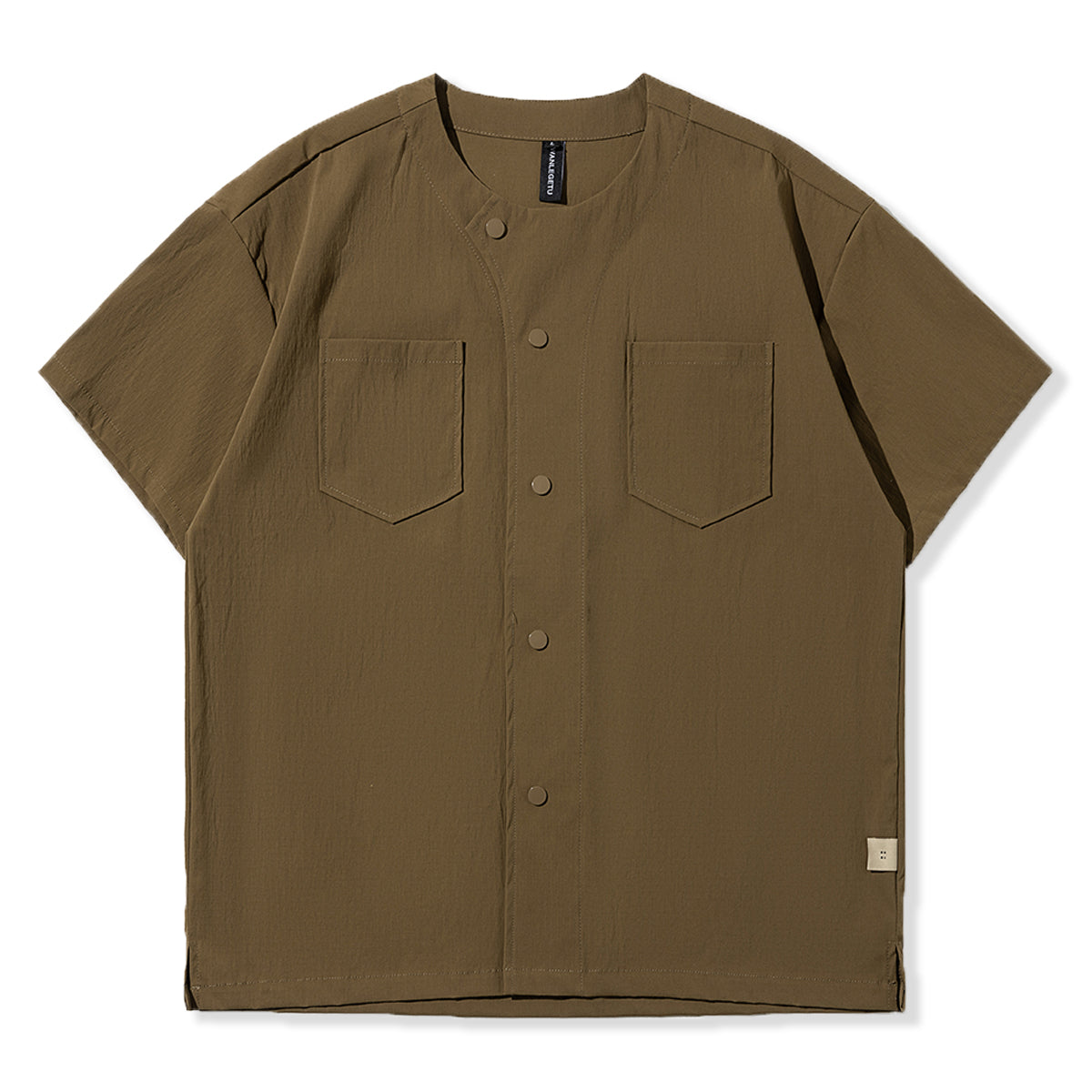 2컬러 기능성 립스탑 노카라 반팔 셔츠