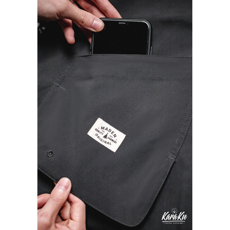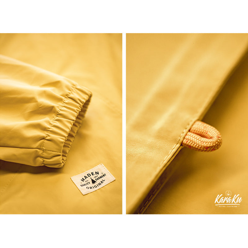 Made of polyester with excellent waterproof and windproof properties, it has a soft and luxurious sheen and a lightweight feel to it. It is machine-washed and features a refined texture of wrinkles and a natural discoloration for a worn-in feel.