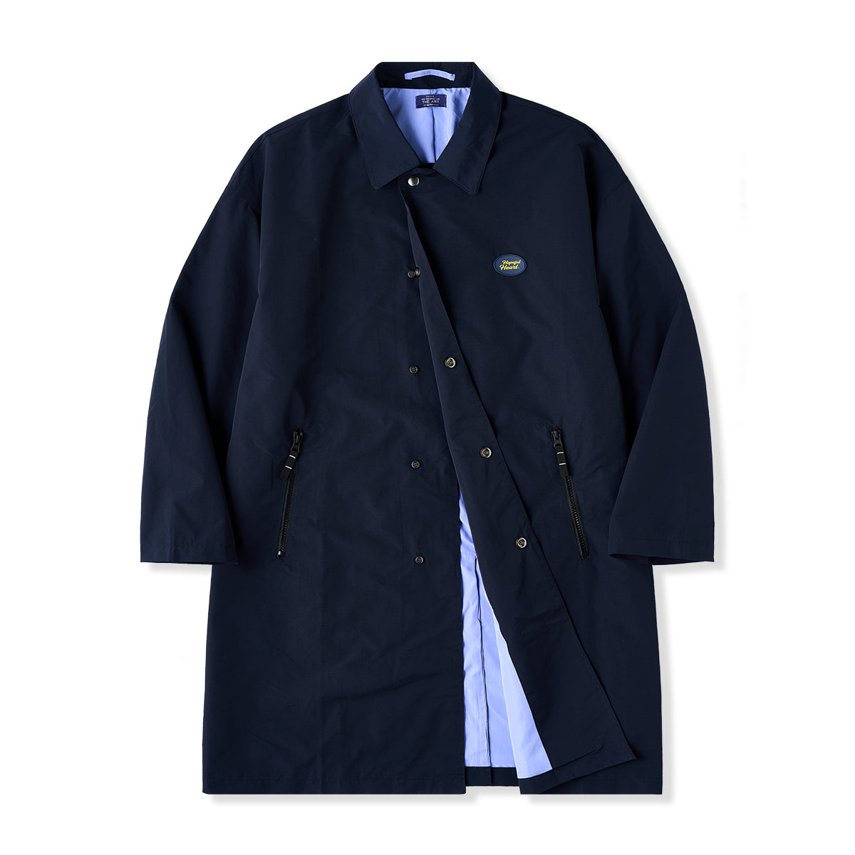 This is a [windproof, waterproof, anti-pollution] balmacaan coat with Teflon fabric locktector processing. It has a pocket on the front and the lining is not too thick or too thin, so it is good to wear in the fall and winter seasons. When all the buttons are closed, the buttons other than the first button are not exposed. The point is the minimal and elegant impression with the buttons covered. It is a light and comfortable outerwear with a loose silhouette and long length.