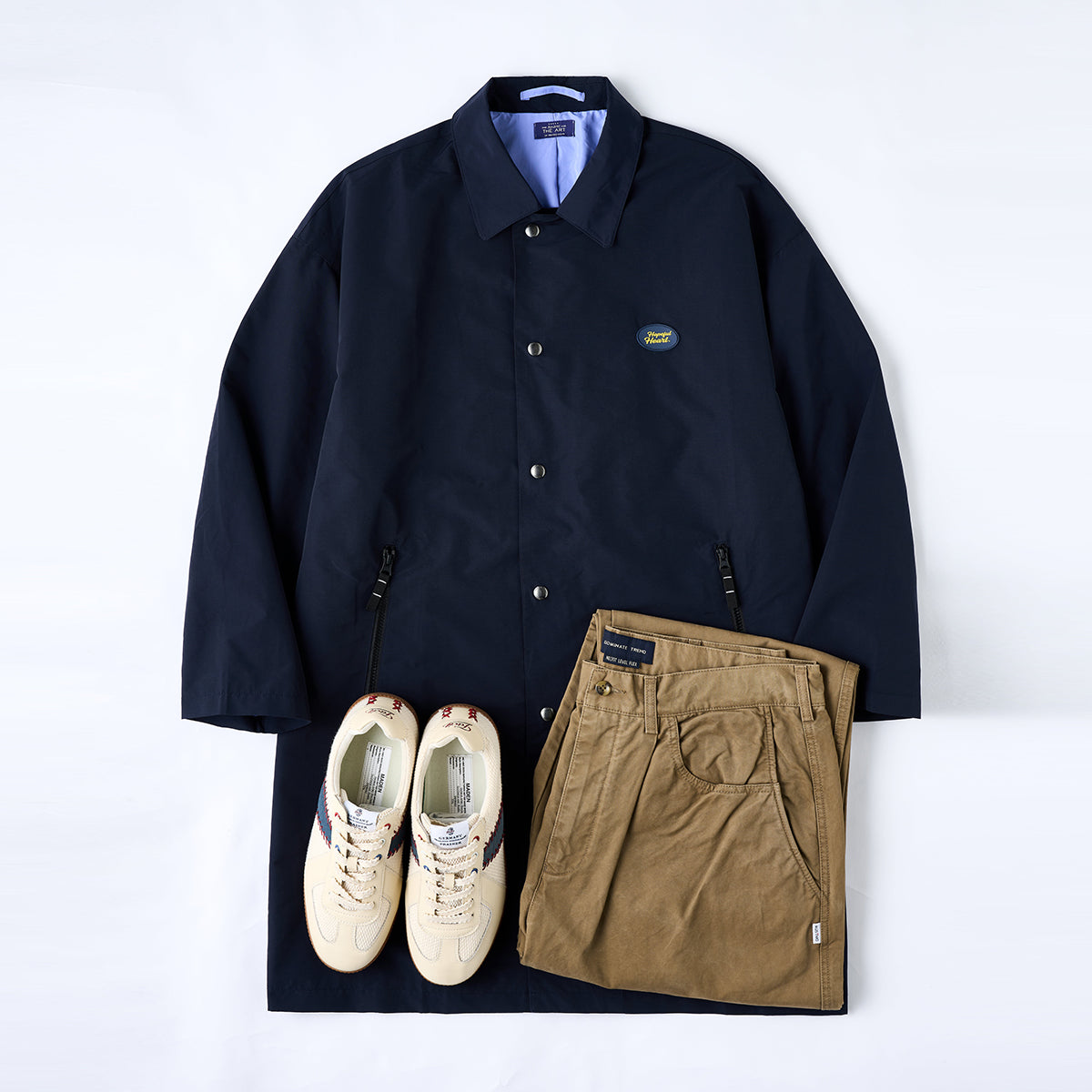 It is a basic design that can be used for commuting and school, and it is a coat that is good to wear for fashion or casual wear because of its generous size. It is a balmacaan coat with a generous and elegant silhouette that wraps around, so you can wear a thick knit inside without feeling stuffy. It is a moderate length that can be used regardless of height, age, or body type. Feel free to code it for an office look or a casual look.