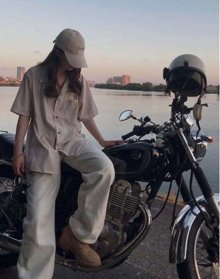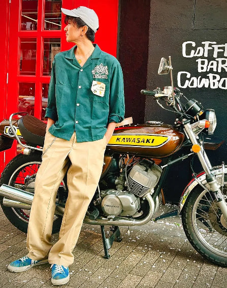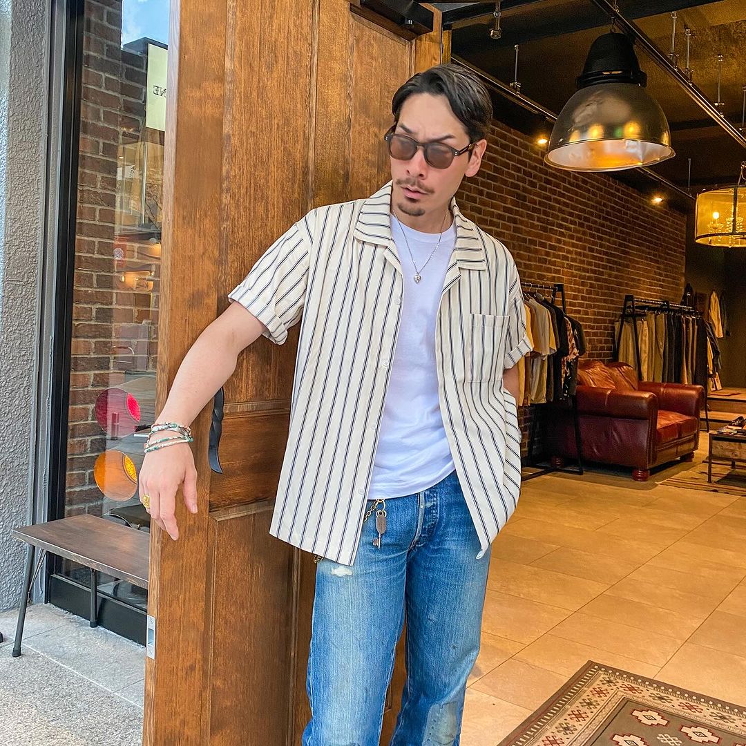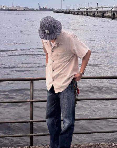 아이조메(藍染)드롭숄더 면마 쿠바 셔츠