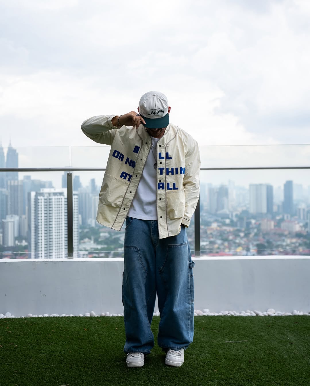 「ALL OR NOTHING AT ALL」핸드메이드 패치 베이스볼 긴팔 셔츠