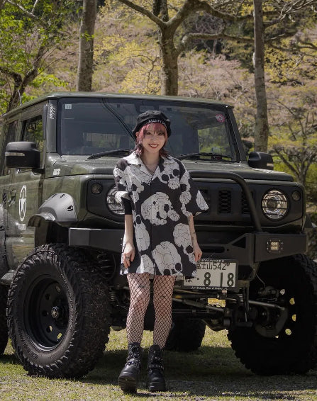「여름의 환시·고양이와 두개골」우키요에 프린트 면마 알로하 셔츠