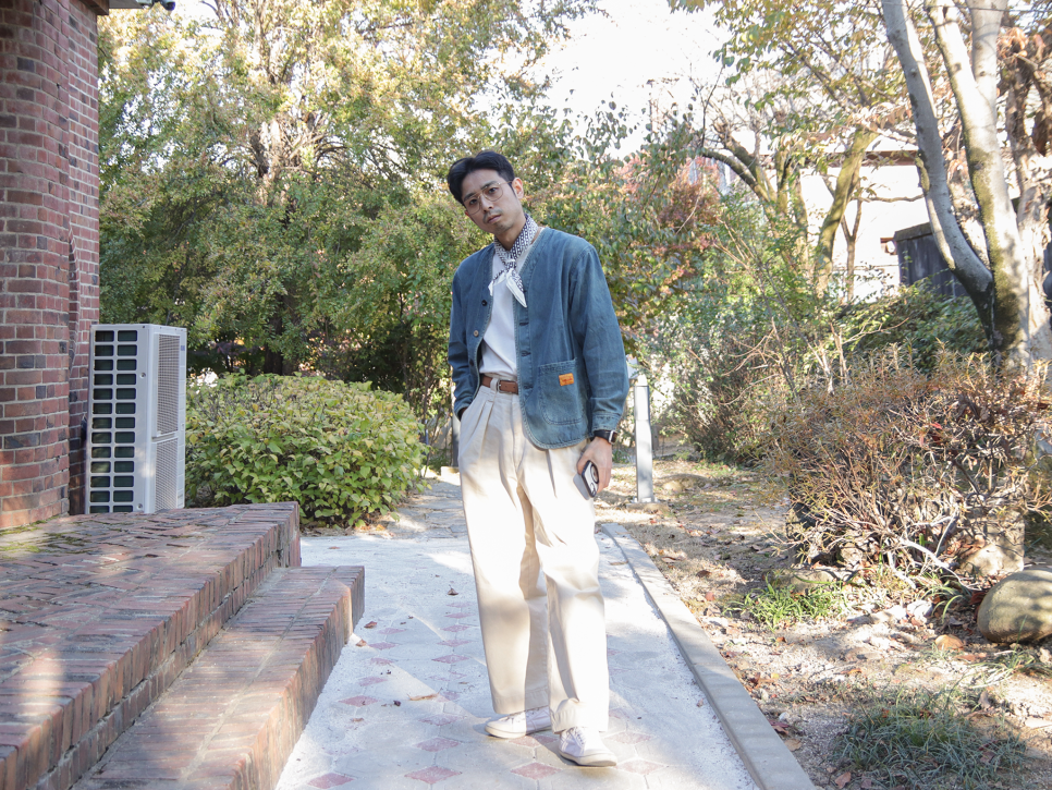 턱가공 개량형 나무꾼 테이퍼트 데님 이지 팬츠