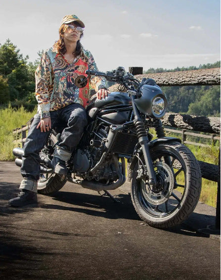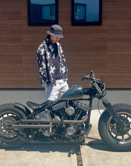 「날고 있는 백학과 꽃」일본식 무늬 코튼 긴팔 셔츠