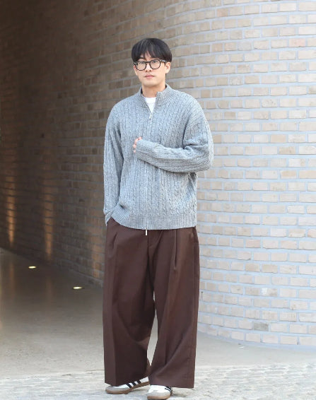 울혼방 꽈배기 더블집 니트 가디건