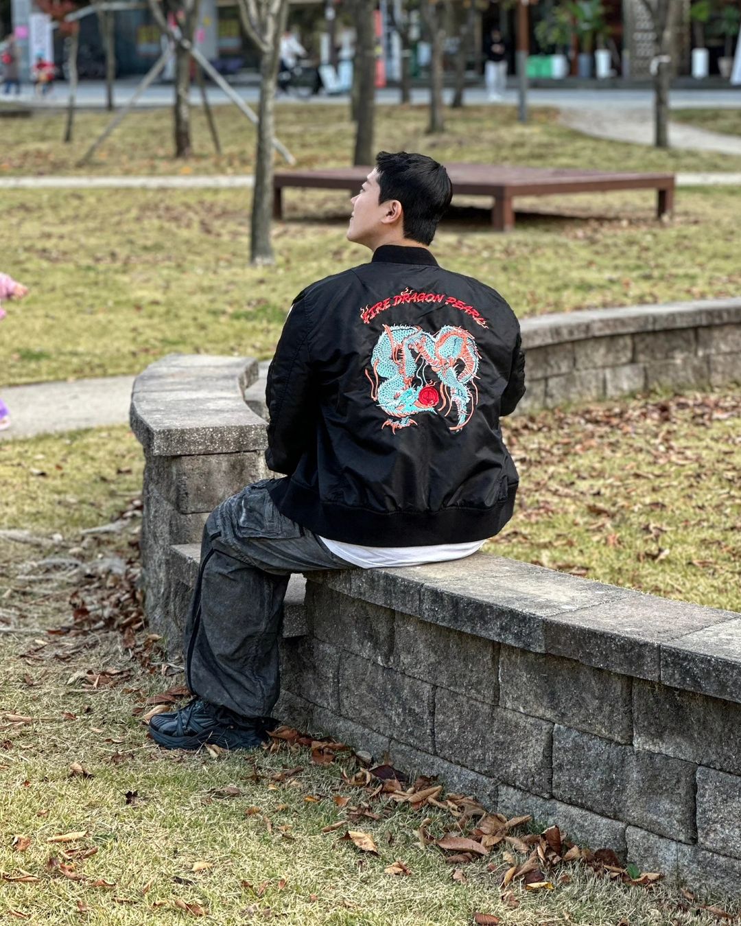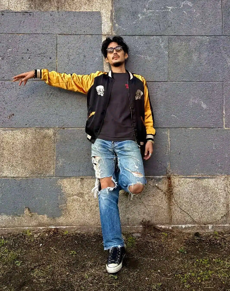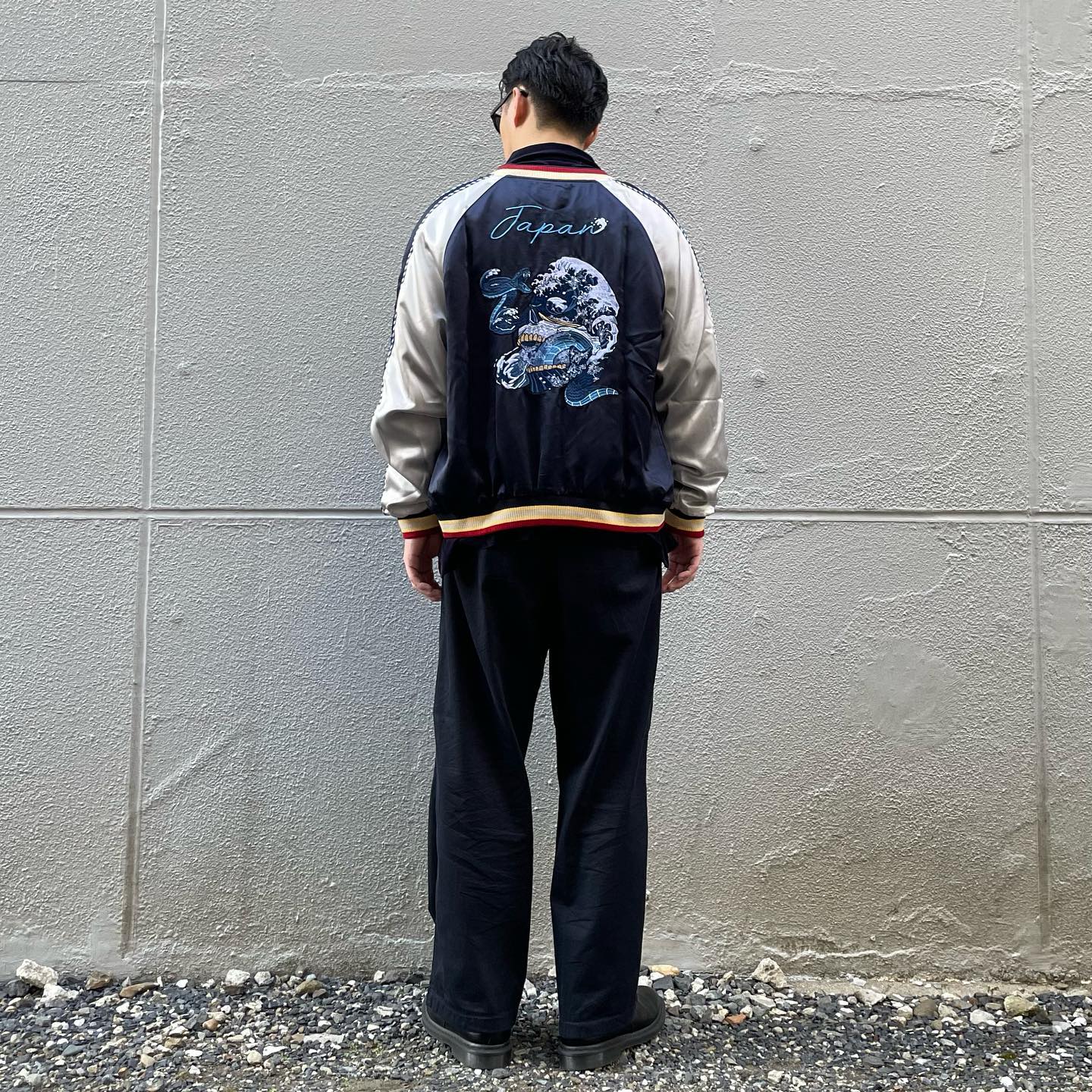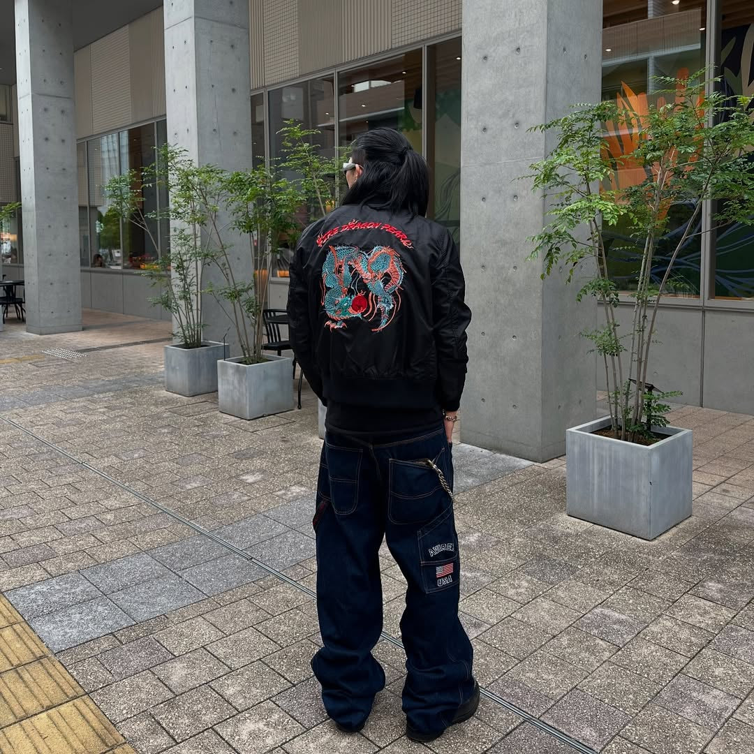 「KaraKux中坪宏太」포효하고 있는 녹색 용 자수 우키요에풍 플라이트 자켓