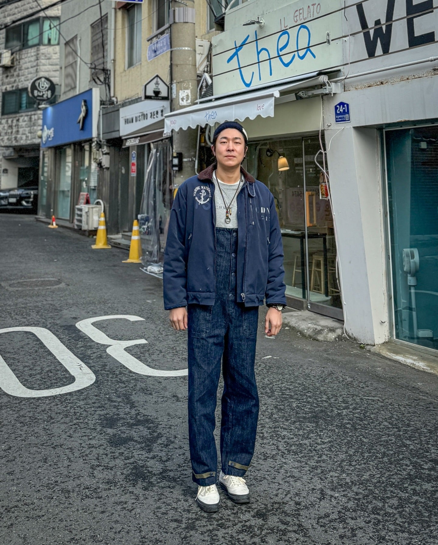 아메리칸 레트로 해군 데크 멜빵바지 데님