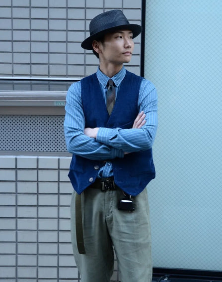 코듀로이 아이조메 빈티지 프렌치 워크 자켓