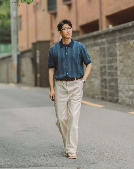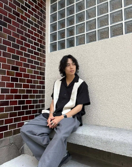 多소재 콤비 쿠바 카라 반팔 셔츠