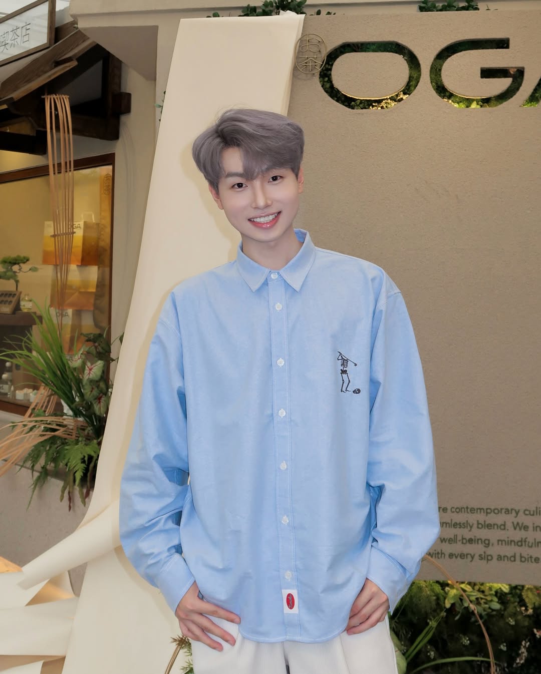 원포인트 자수 터키석 단추 긴팔셔츠