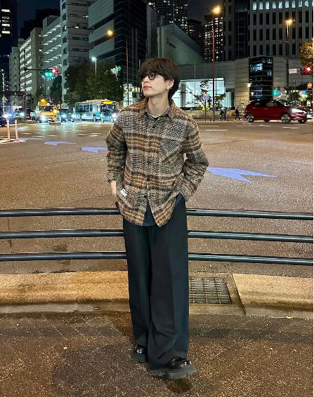 체크 무늬 기모감 트위드 셔츠