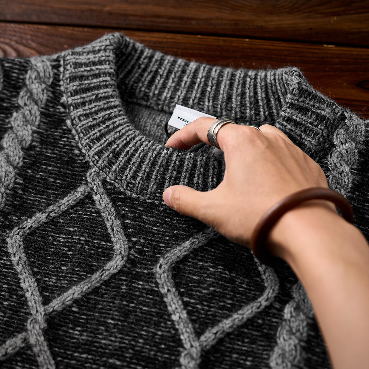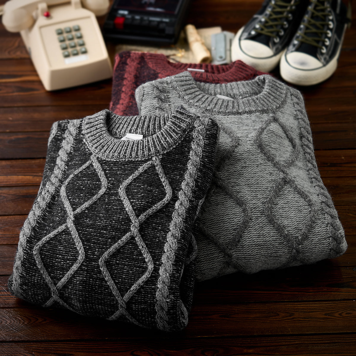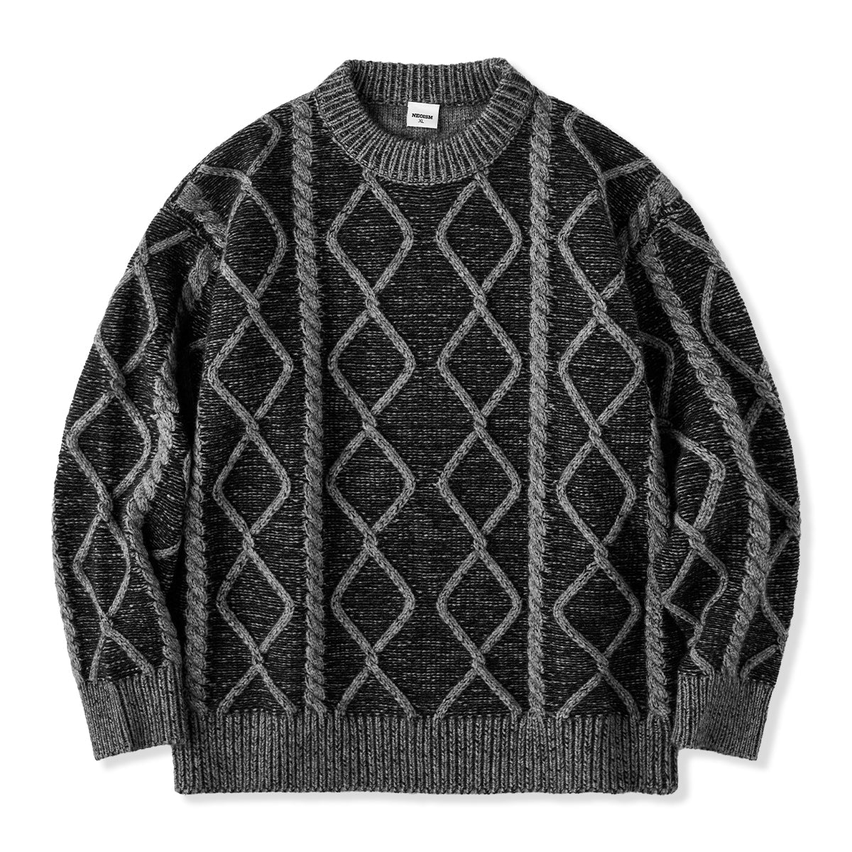 다이아몬드 케이블 패턴 크루넥 니트 스웨터