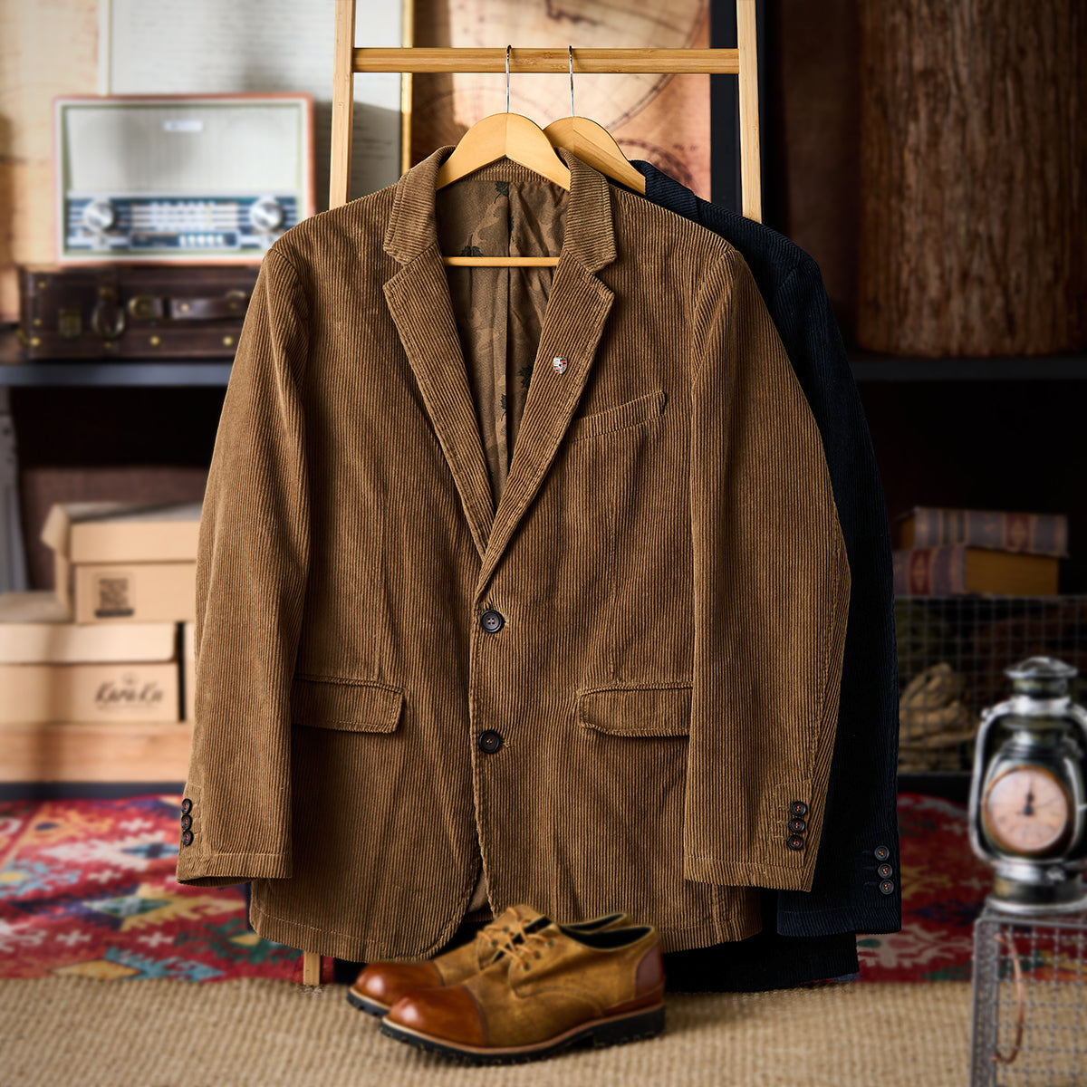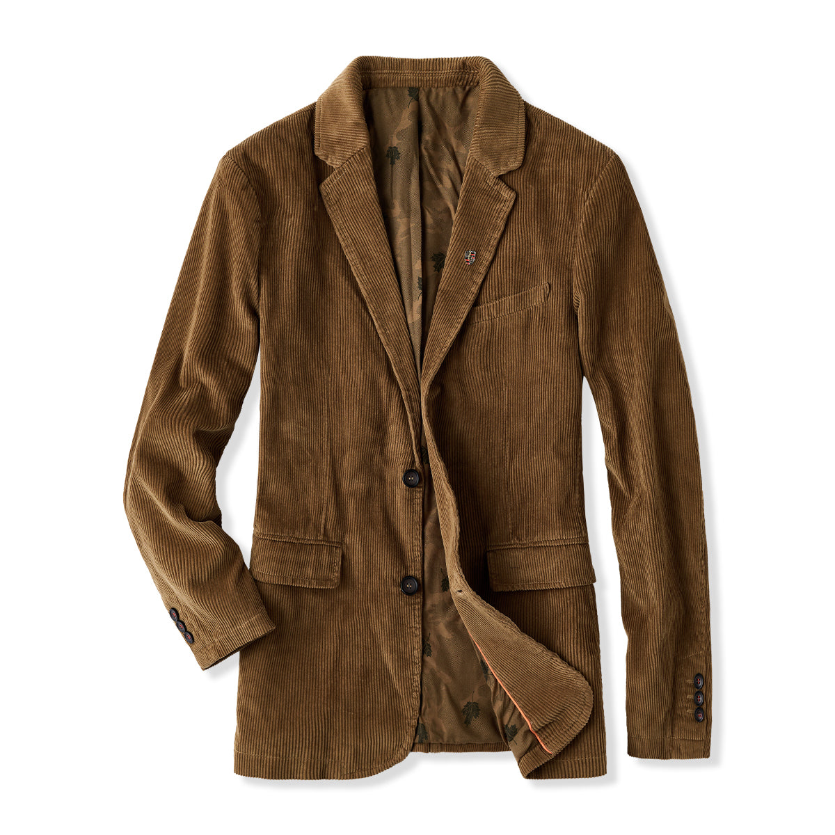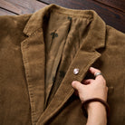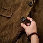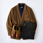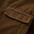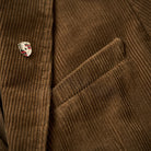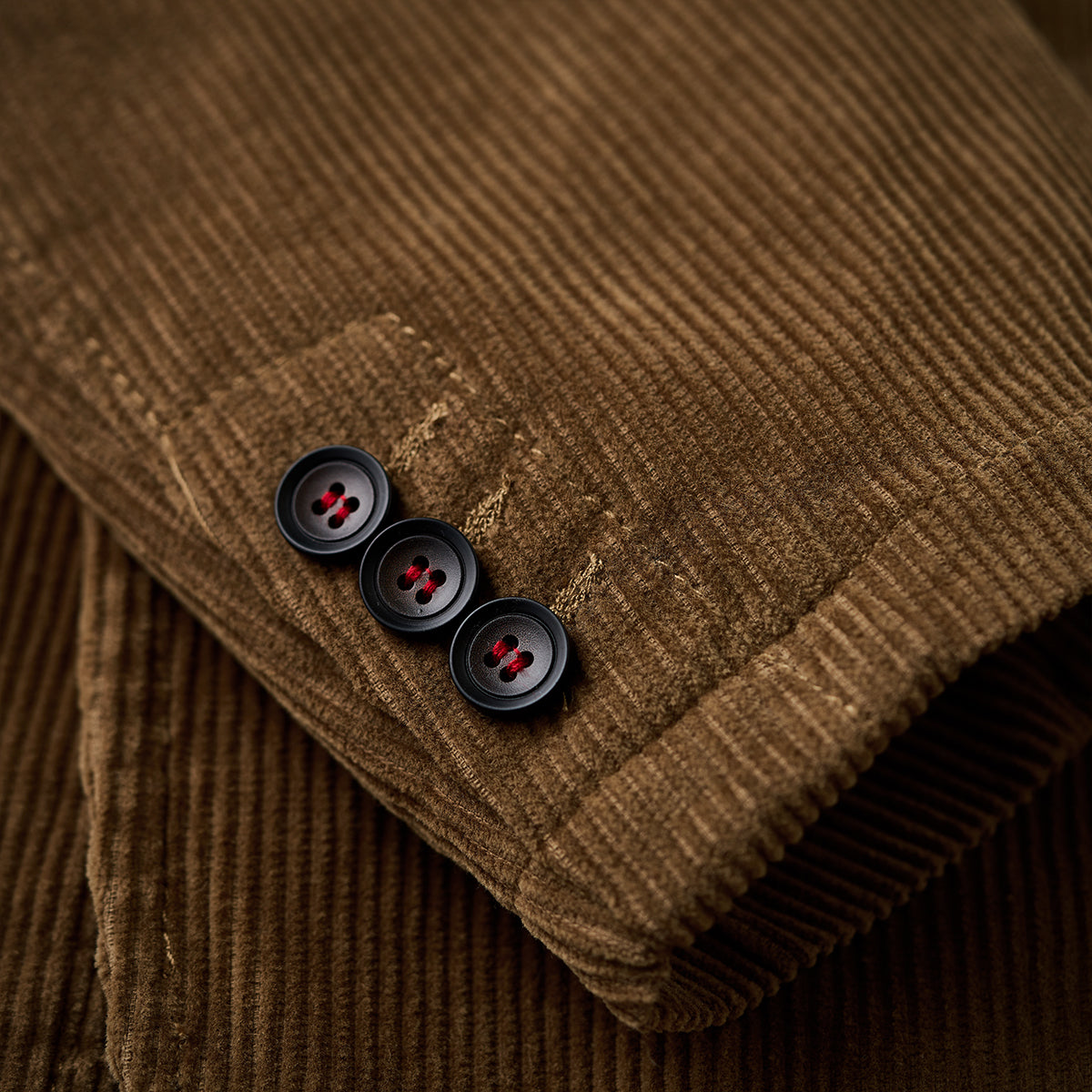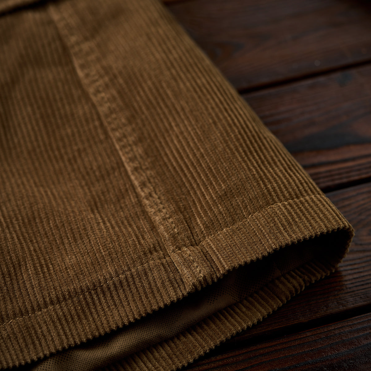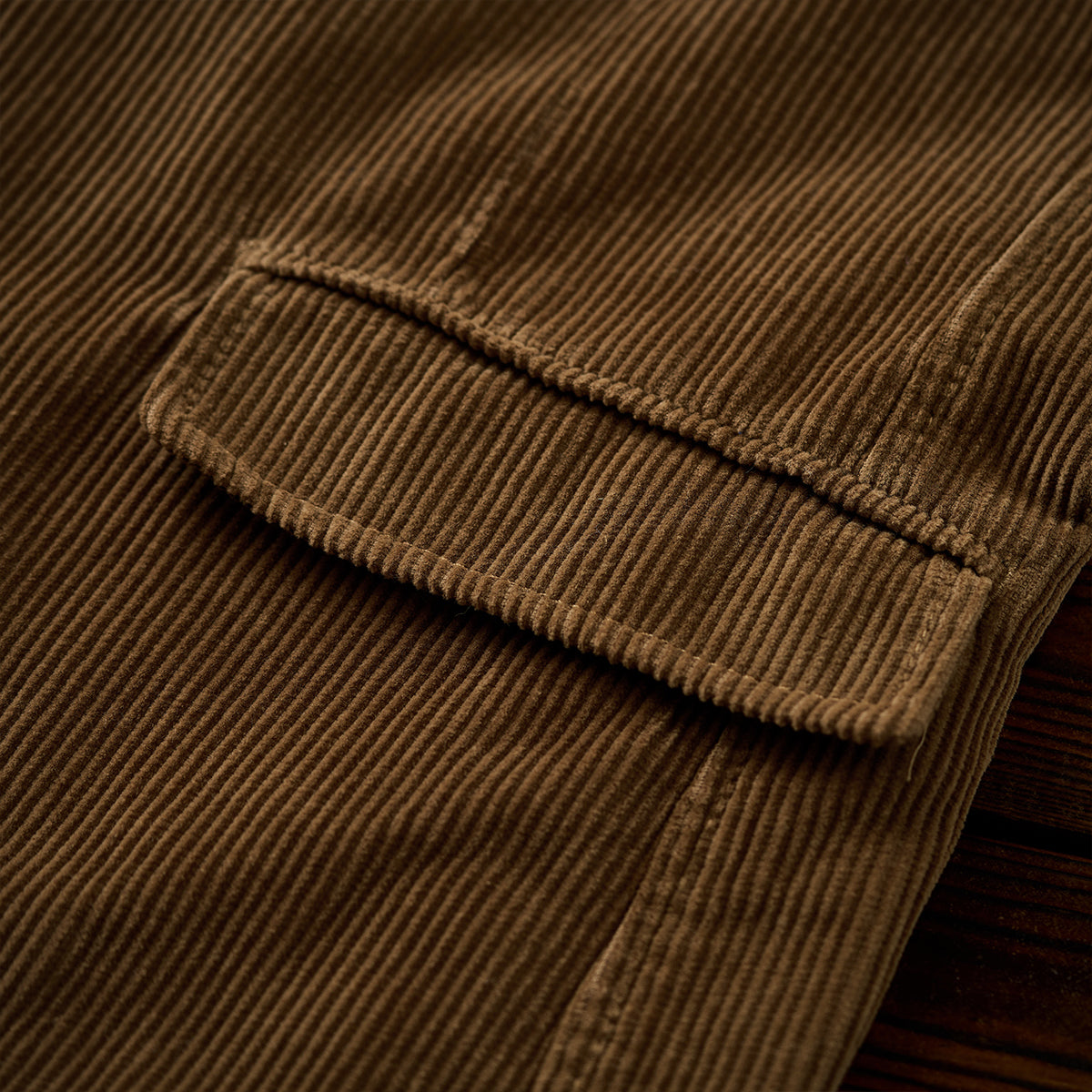 원단은 굵은 능선이 특징인 코듀로이로 제작되어 부드러운 촉감과 적당한 기모감이 느껴지며, 도톰하고 볼륨감 있는 소재감이 돋보입니다.