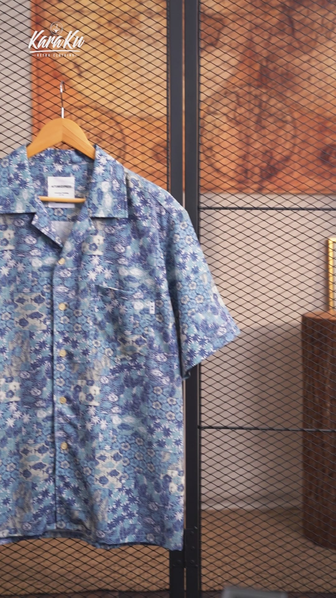 레트로 스타일을 좋아하는 사람이라면 놓칠 수 없는 여름 필수 아이템, 알로하 셔츠입니다! 빈티지 감성의 블루 베이스에 식물과 작은 물고기 패턴이 랜덤하게 배치되어 장난기 가득한 분위기를 연출합니다. 패치워크 디테일이 천으로 디자인되어 포인트를 주며, 입기만 해도 여름 분위기를 살릴 수 있습니다. 세련된 쿠바 칼라로 코디에 입체감을 더하고, 소맷부리는 활동성을 높였습니다. 왼쪽 가슴 포켓은 간단한 소품 보관에도 편리합니다.