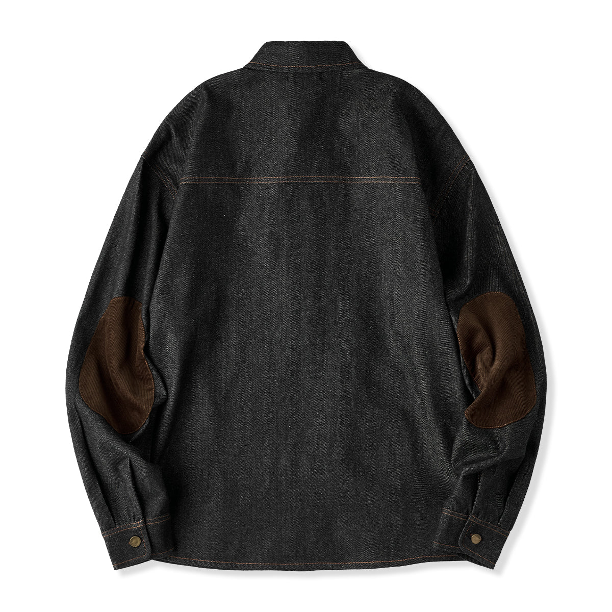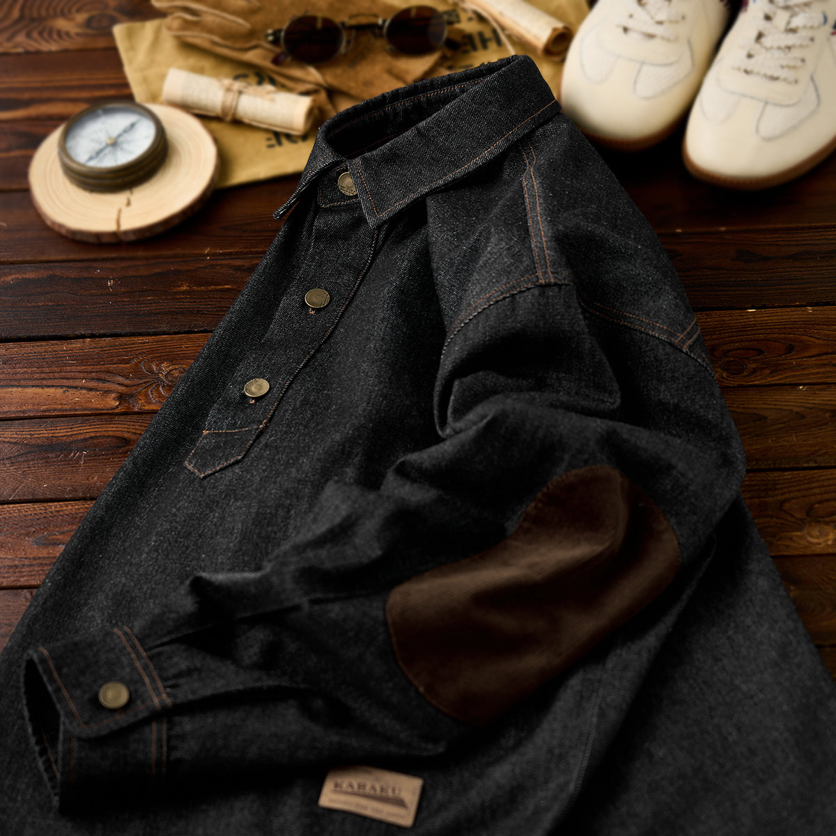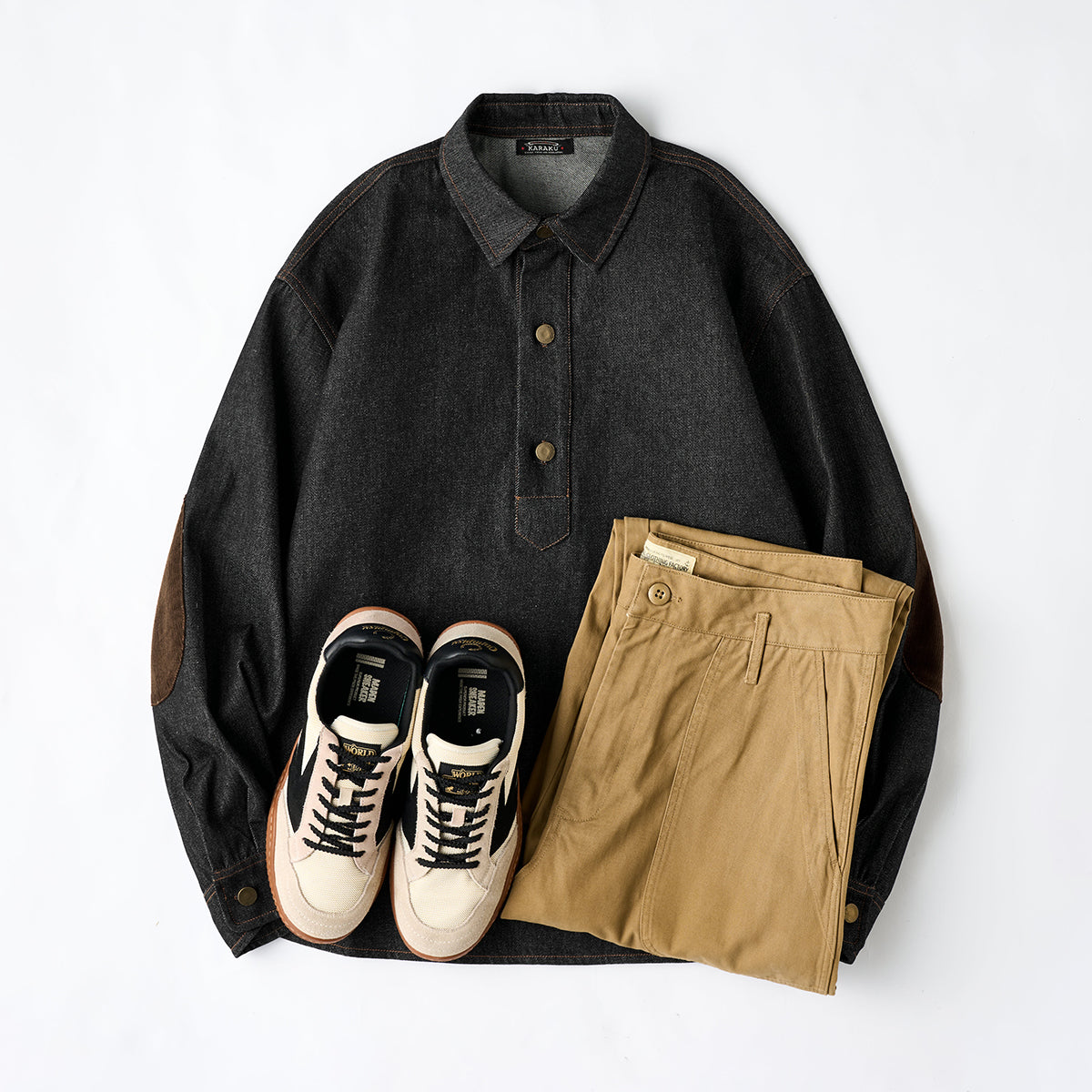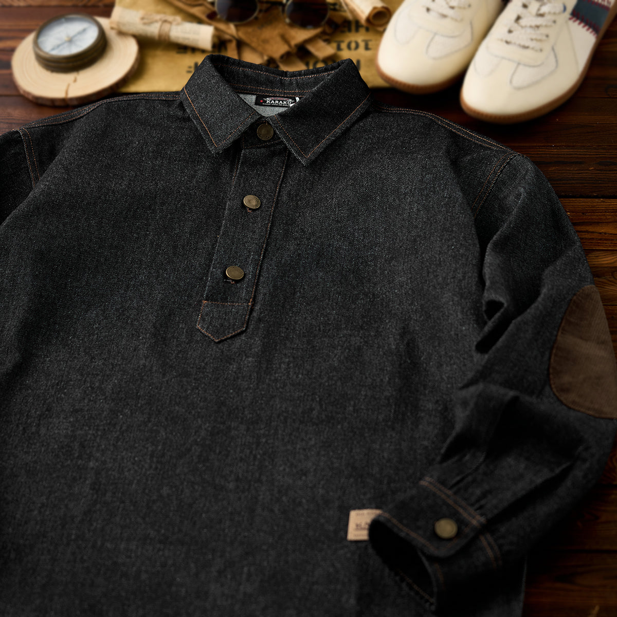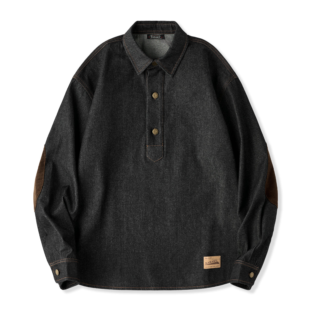 코듀로이 엘보 패치 브라스 하프버튼 데님 풀오버