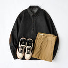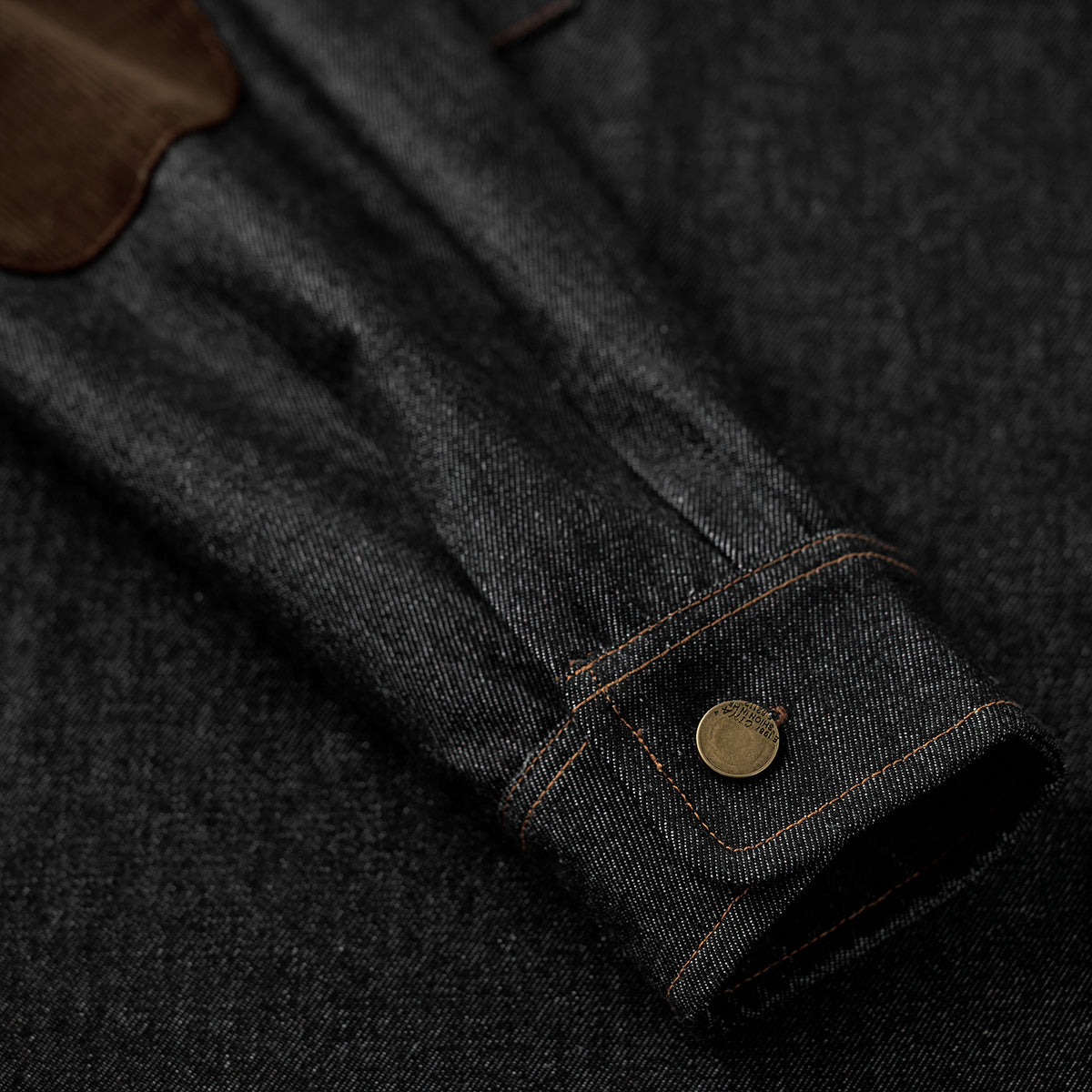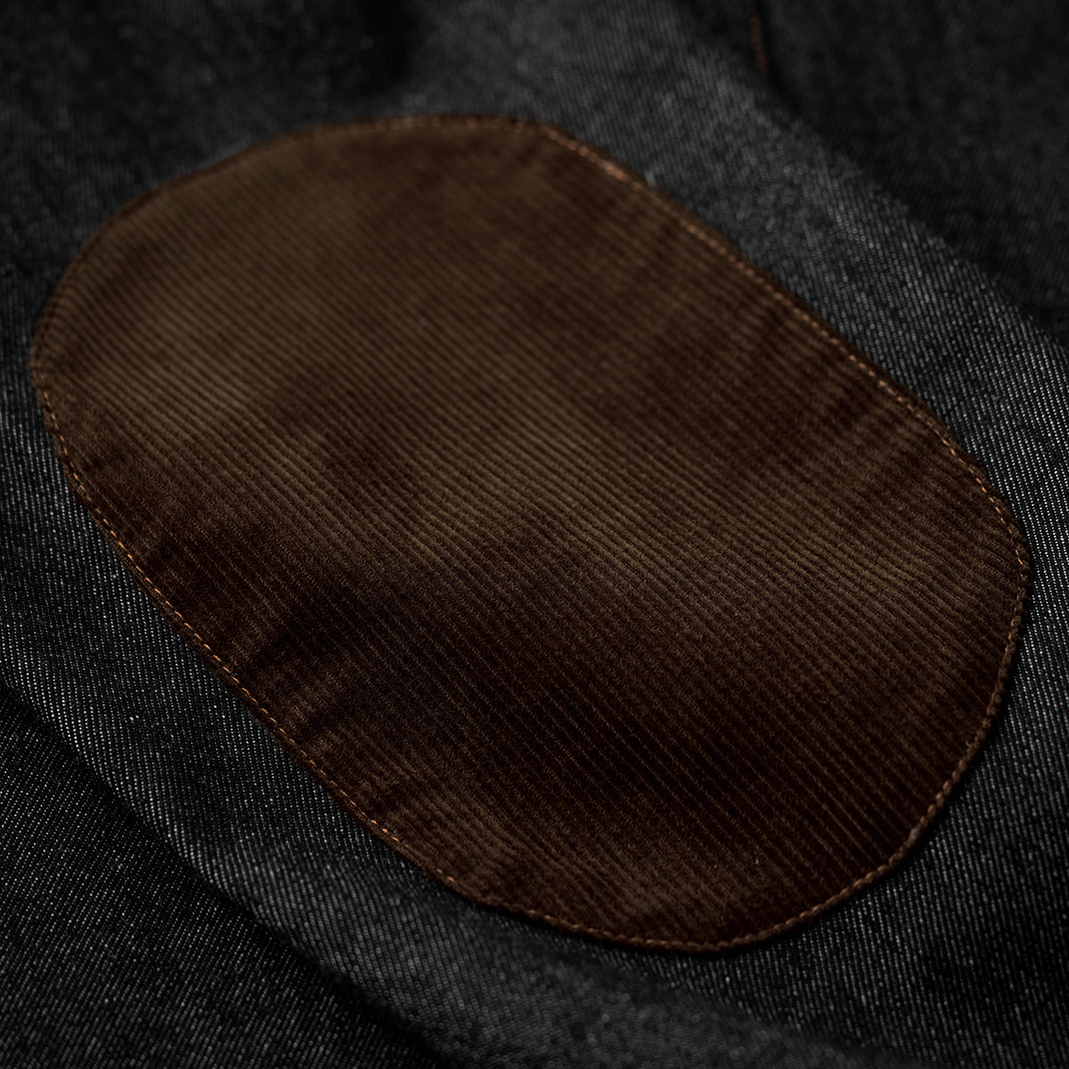 브라운 코듀로이 팔꿈치 패치와 스티치로 포인트와 입체감을 살리고, 황동 단추로 고급스러움을 더한 디자인입니다.