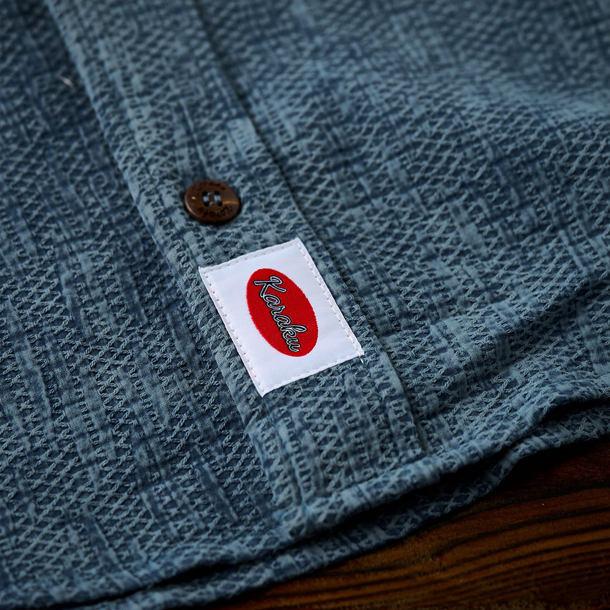 왼쪽 가슴 포켓 위에 ‘STRIKE!’라는 눈길을 끄는 폰트와 볼링 스트라이크를 치는 검은 고양이 일러스트가 더해져 유쾌하고 친근한 분위기를 연출합니다.