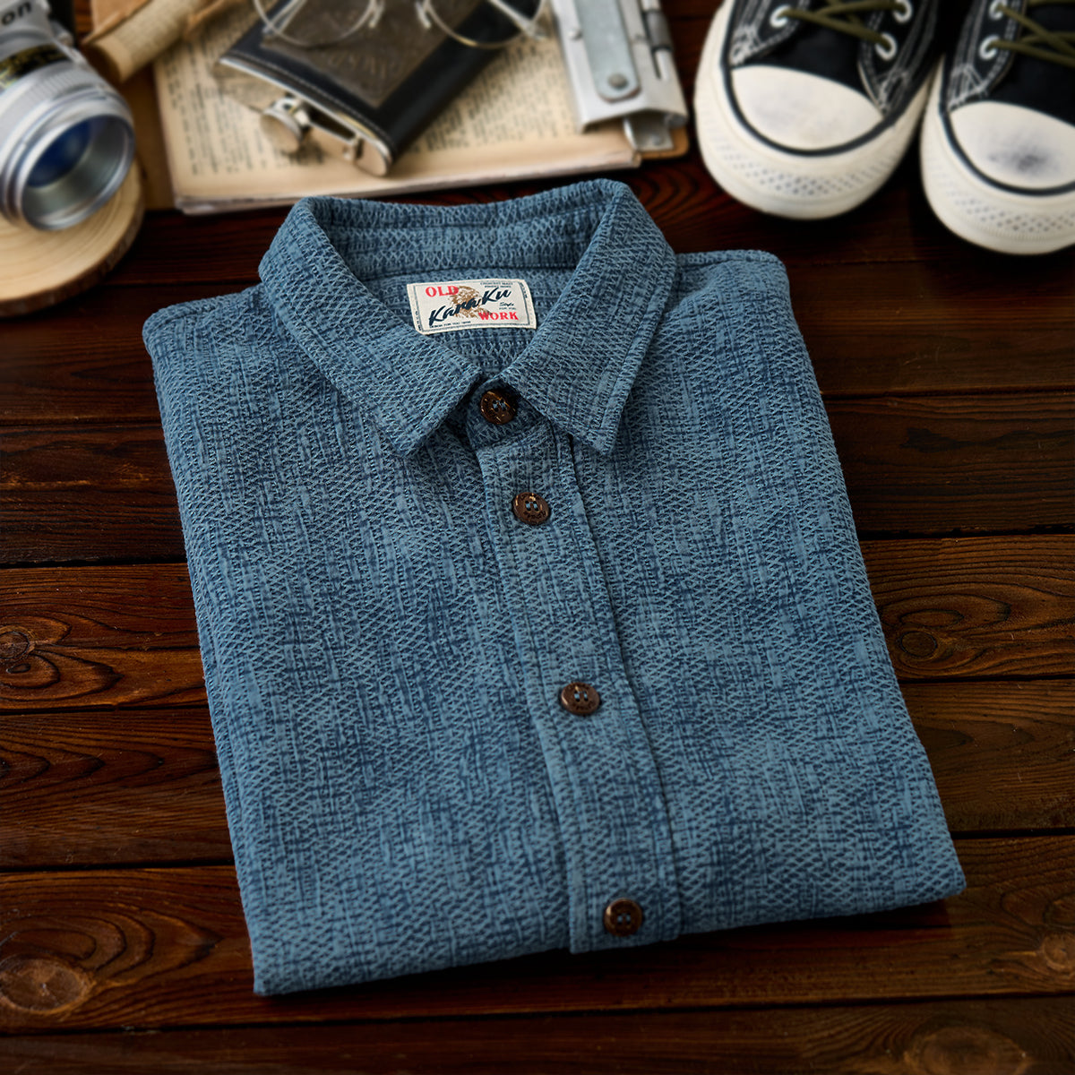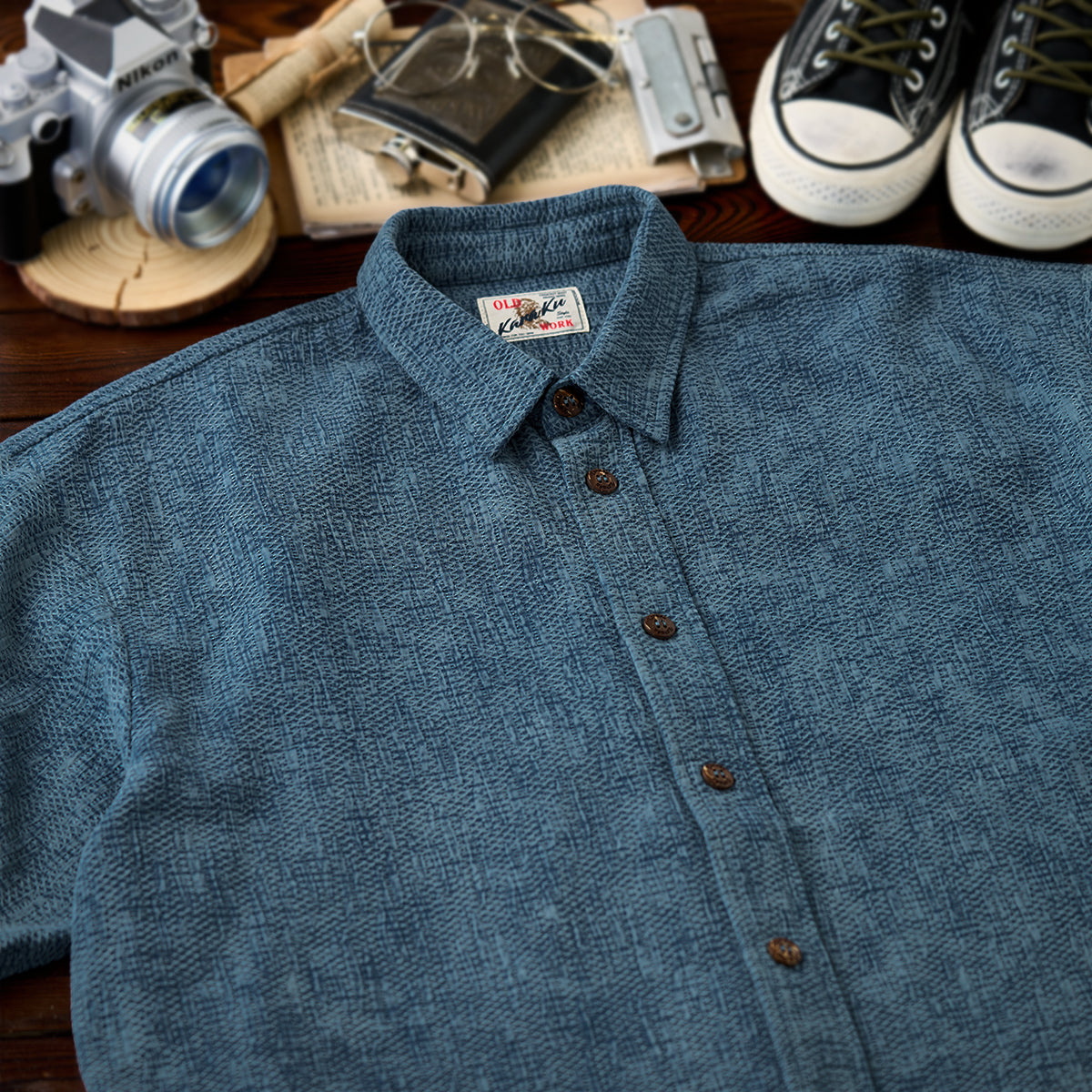 센스 있는 자수 포인트와 유쾌한 고양이 일러스트가 돋보이는 셔츠. 단조로움 없이 감각적인 스타일링이 가능한 아이템입니다.