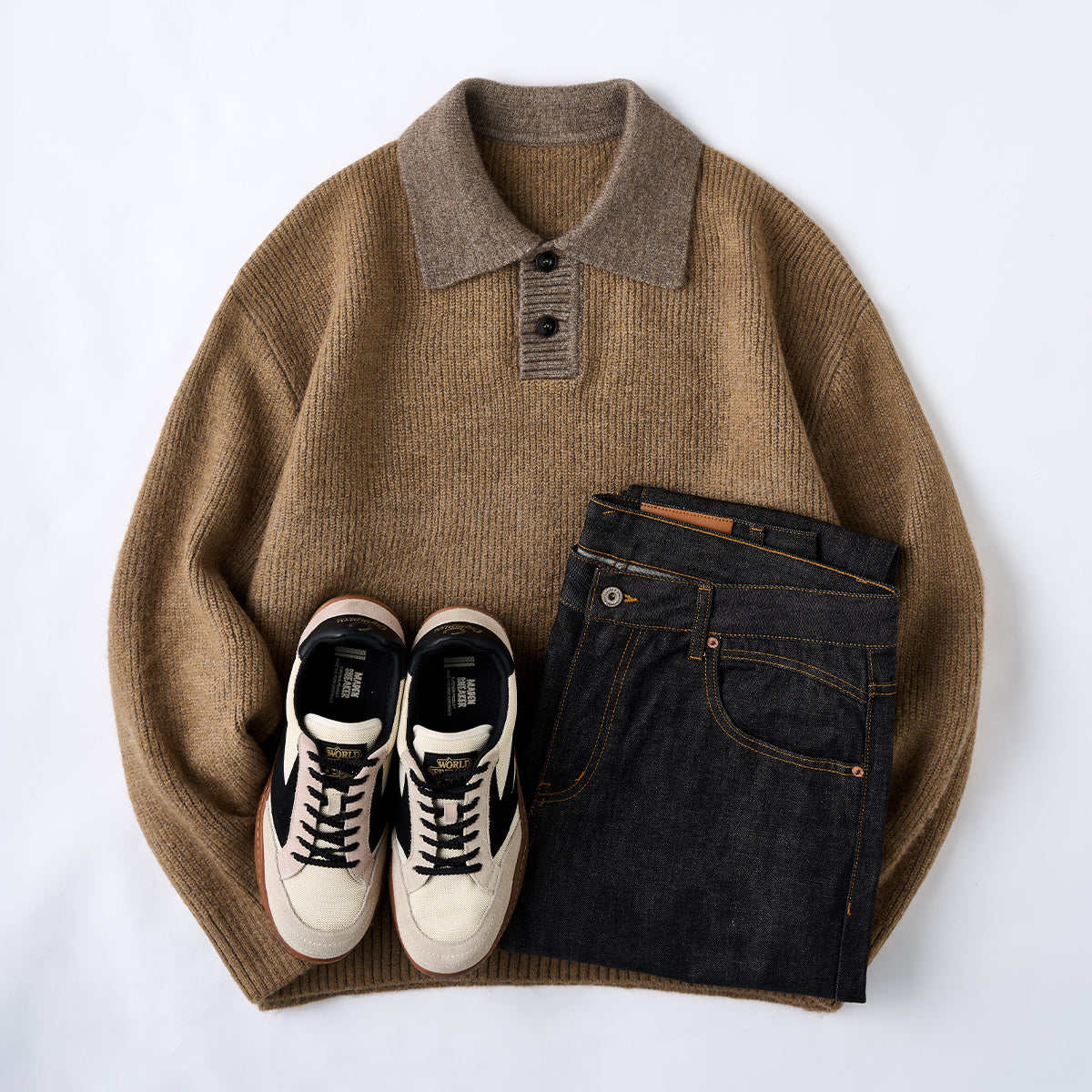 590g 헤비웨이트 폴로칼라 드롭 숄더 니트 스웨터