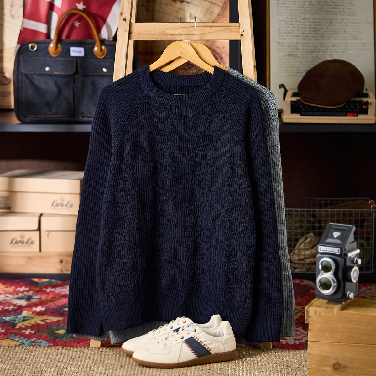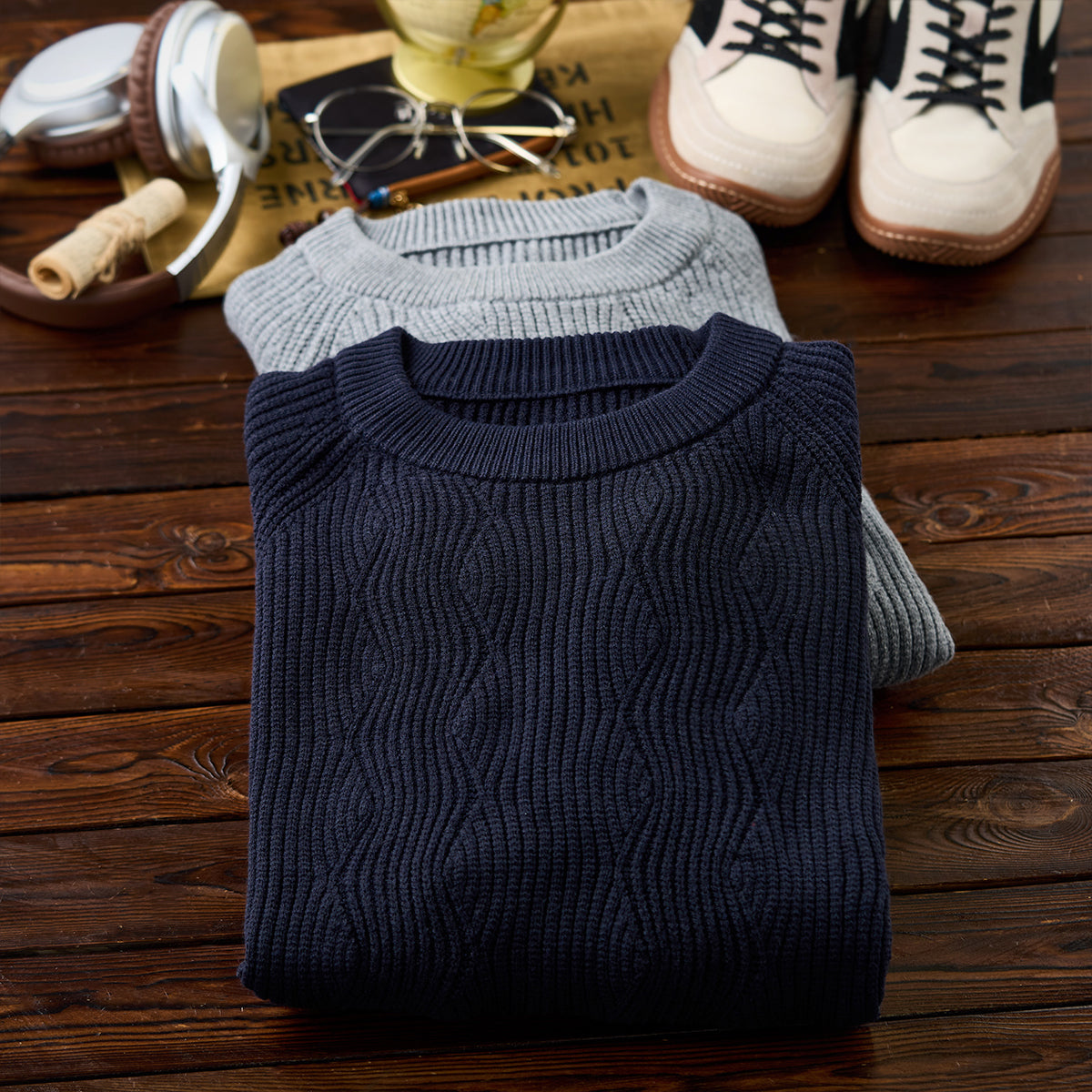 차분한 다크 네이비와 그레이 2가지 컬러로, 다양한 하의와 손쉽게 코디할 수 있는 니트입니다. 캐주얼은 물론 셔츠와 매치하면 포멀한 자리에서도 활용 가능합니다.