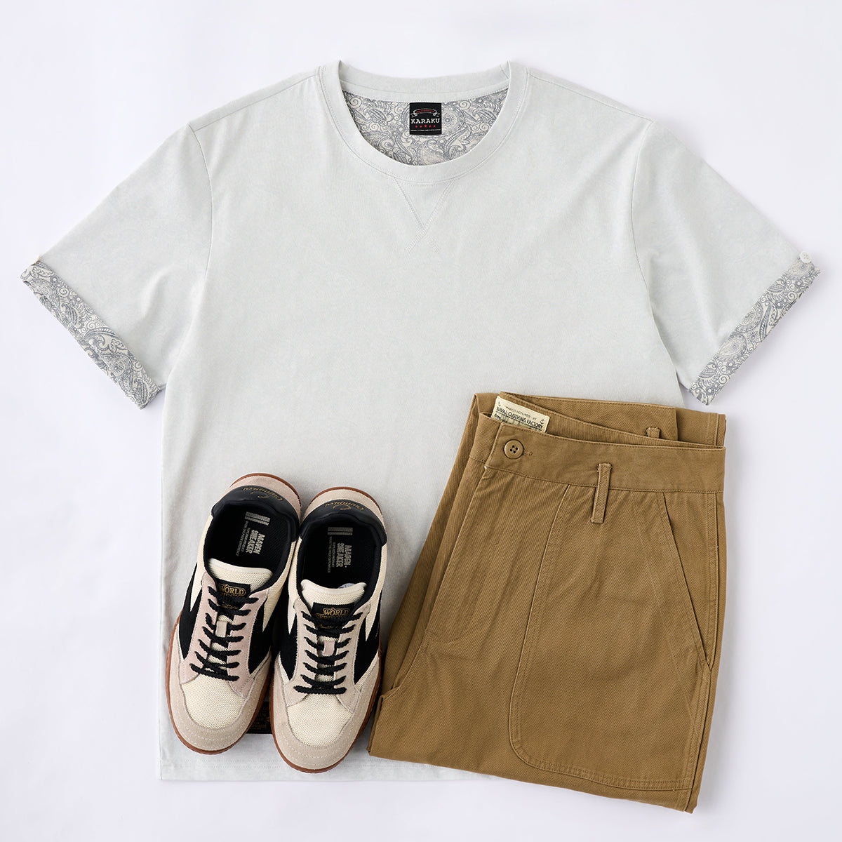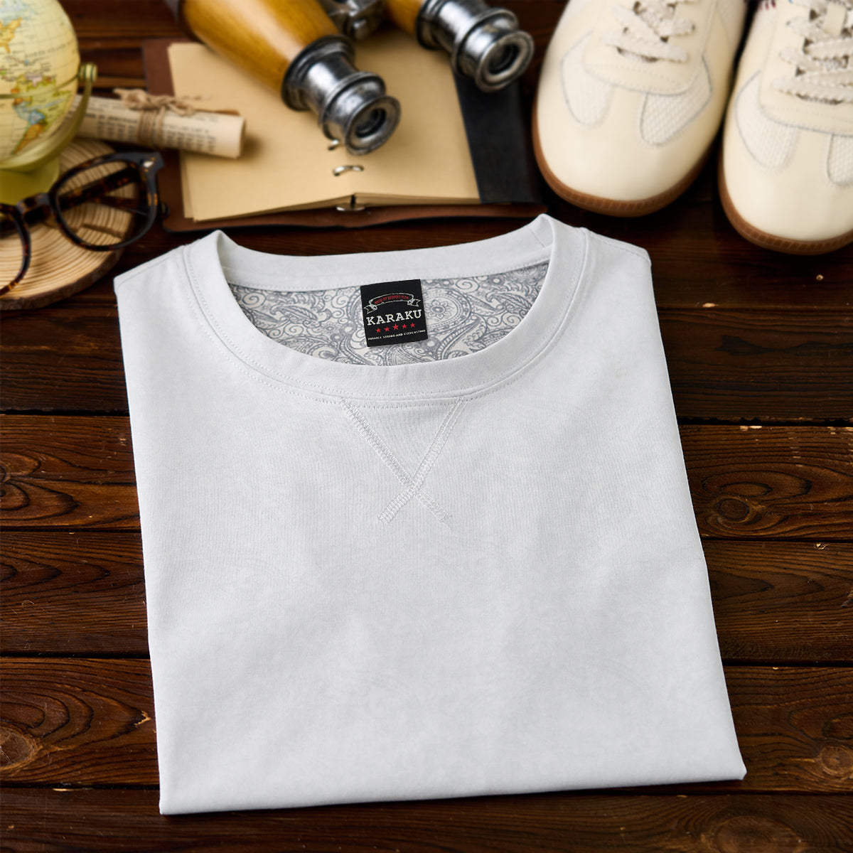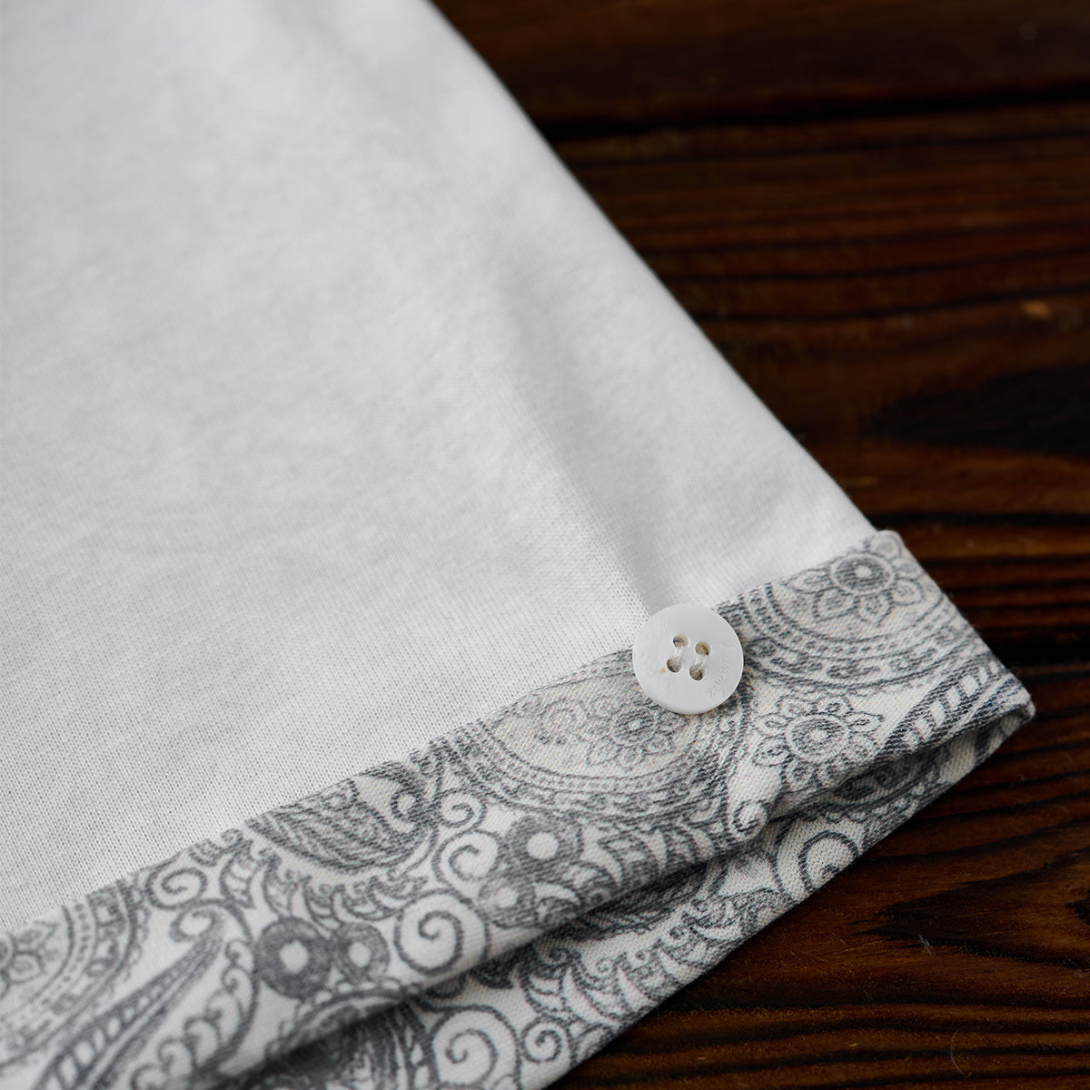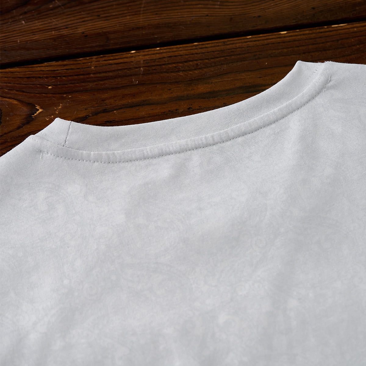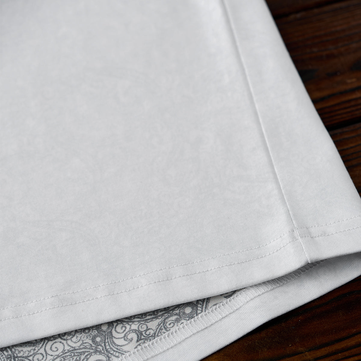 미니멀한 무지 디자인에 안쪽 페이즐리 패턴을 더해 은은한 포인트와 깊이감을 살린 반팔 티셔츠입니다. V거셋 디테일과 탄탄한 원단으로 실루엣을 잡아줍니다.